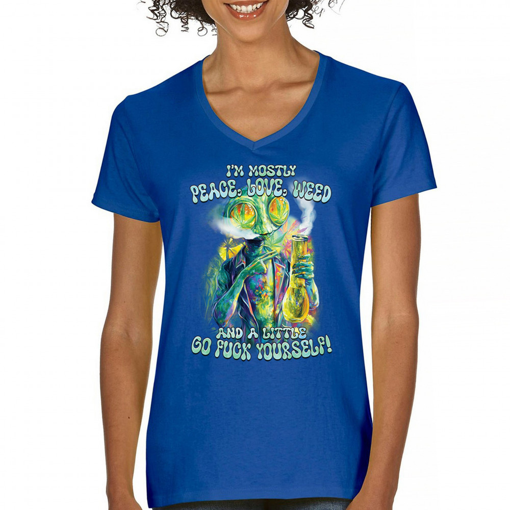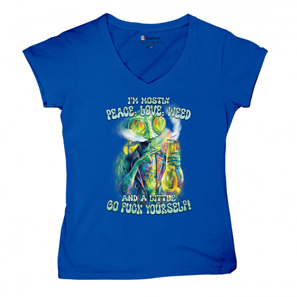 Bold alien cannabis design mixing humor, sarcasm, and weed culture—perfect for unapologetic smokers with attitude and peace vibes.