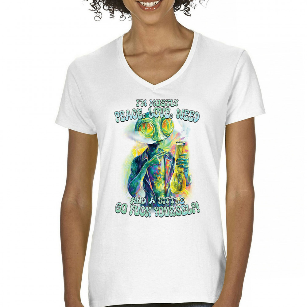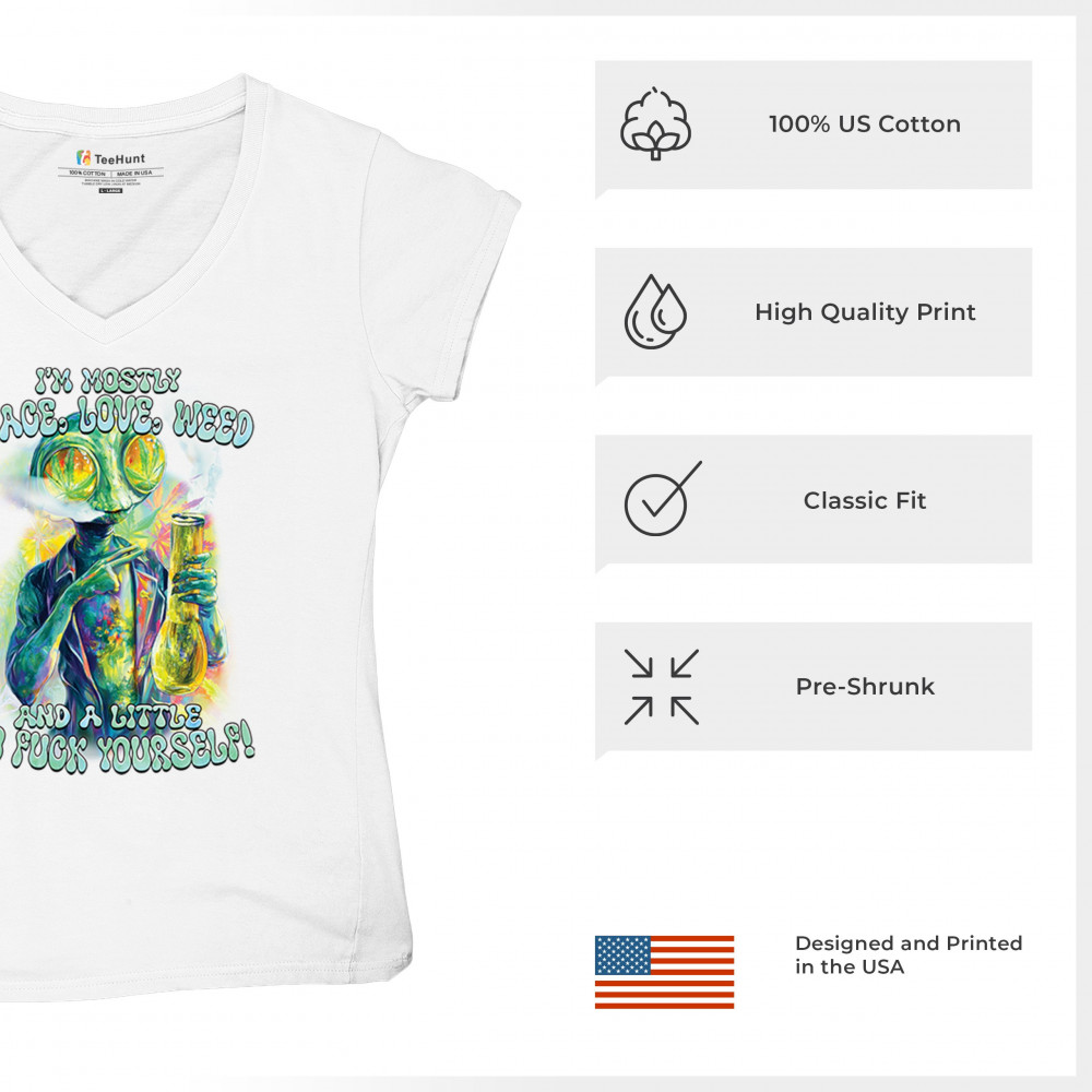 Bold alien cannabis design mixing humor, sarcasm, and weed culture—perfect for unapologetic smokers with attitude and peace vibes.