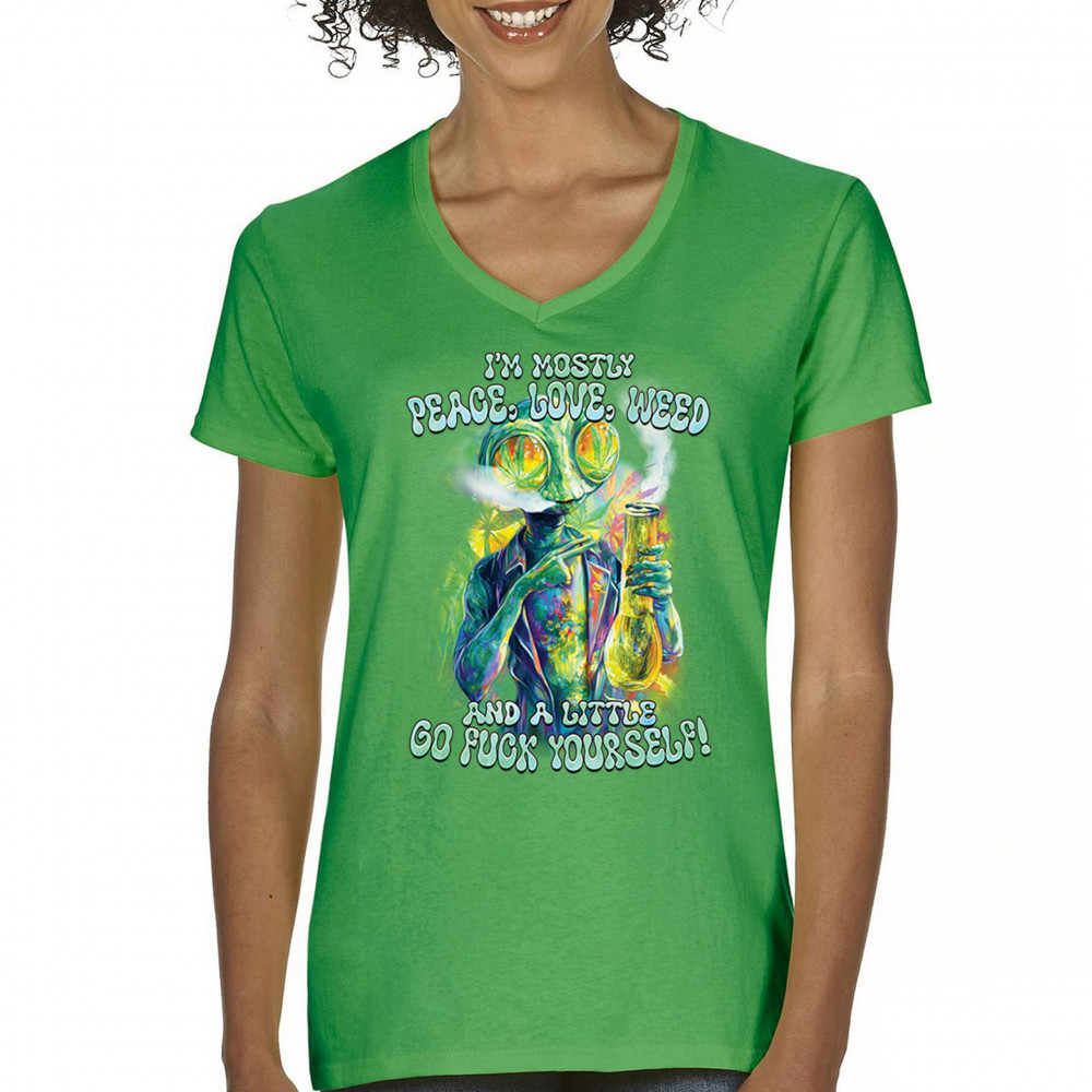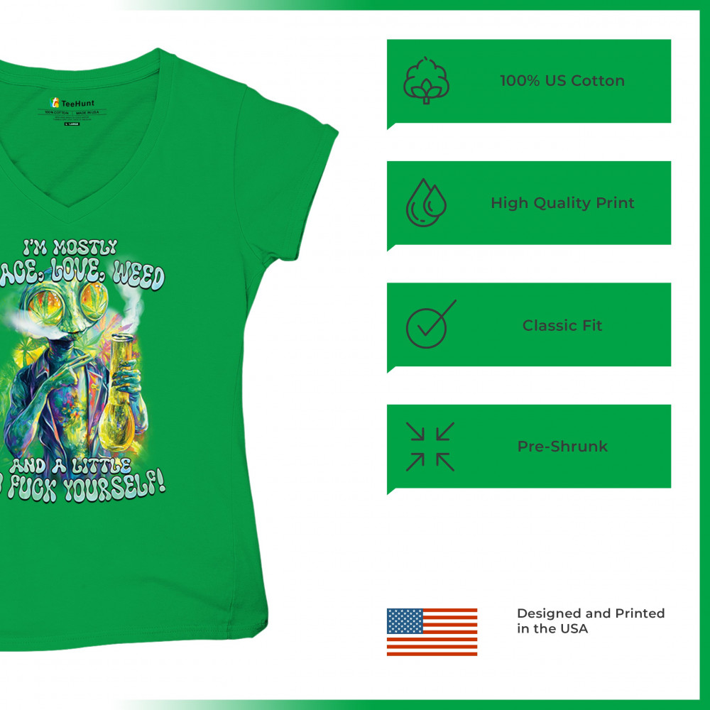 Bold alien cannabis design mixing humor, sarcasm, and weed culture—perfect for unapologetic smokers with attitude and peace vibes.