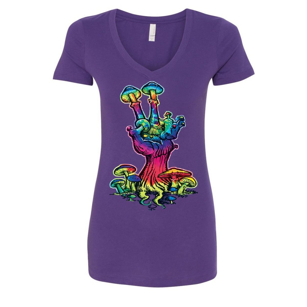 MUSHROOM PEACE peace mushroom women's v-neck t-shirt shroom hippie fungi colorful neon love purple