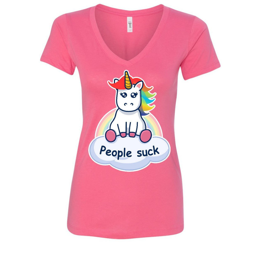 PEOPLE SUCK cute unicorn women's v-neck t-shirt funny rainbow pony introvert pink