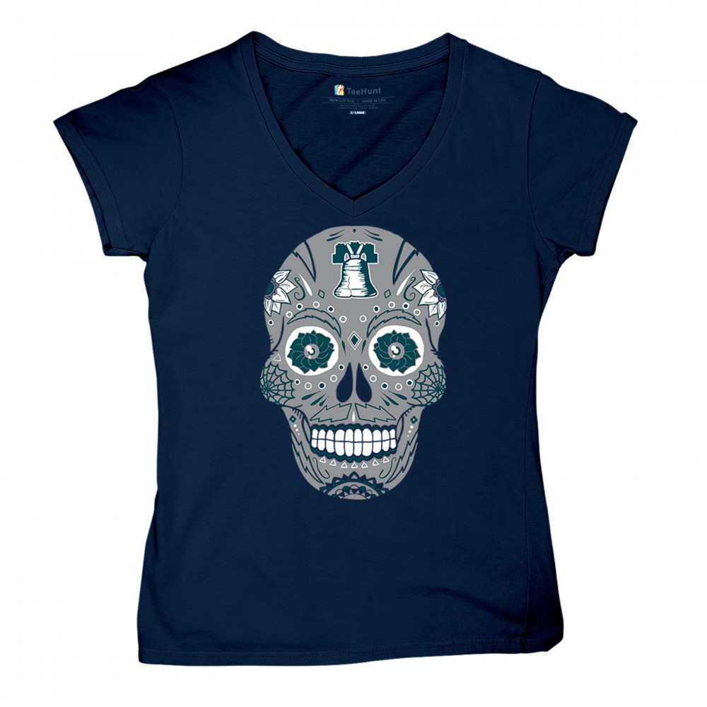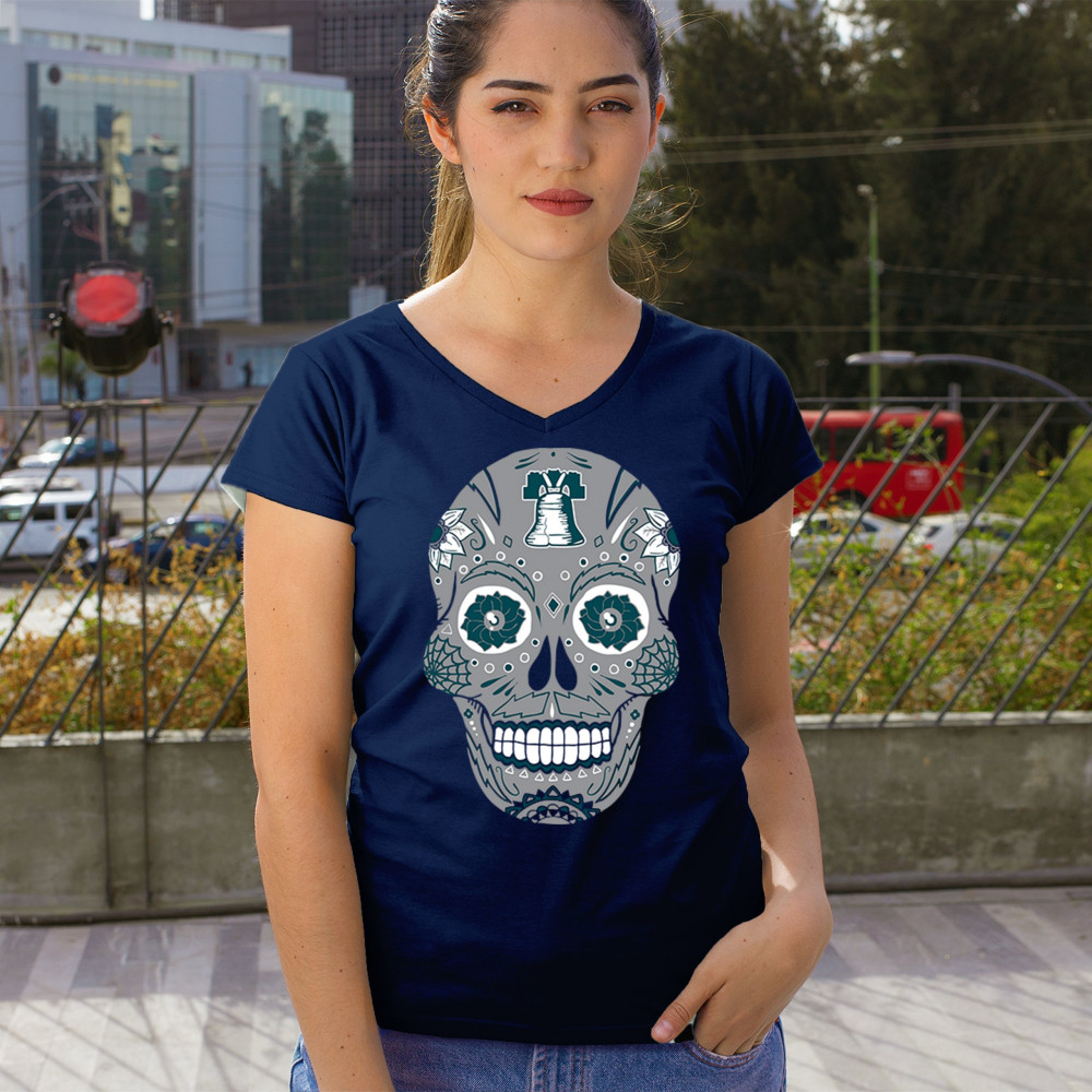 Philly meets tradition in this Sugar Skull design, mixing calavera art with the iconic liberty bell and marigold flowers. Perfect for Philly sports culture, fantasy league energy, or game day skull vibes, it captures Philly gothic art and fan zone spirit. A unique way to honor Dia de los Muertos while showing local Philadelphia pride and heritage in bold style.