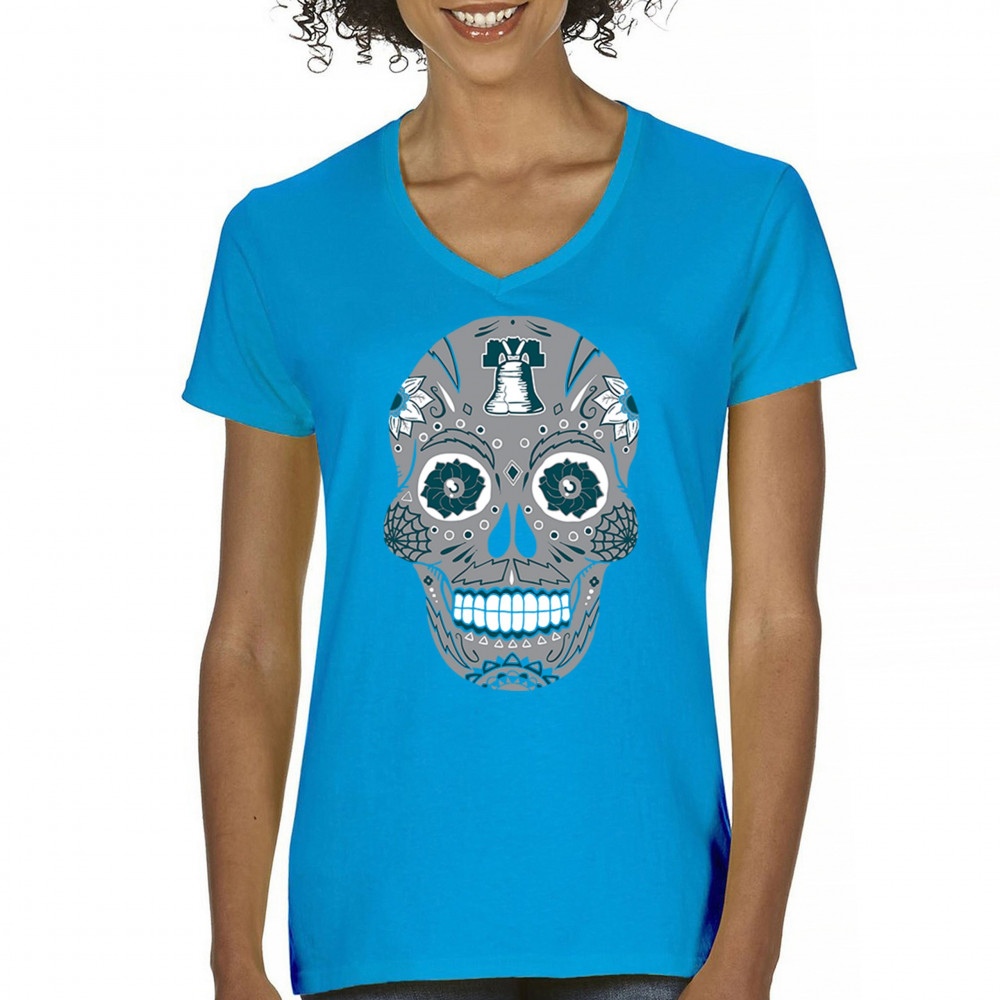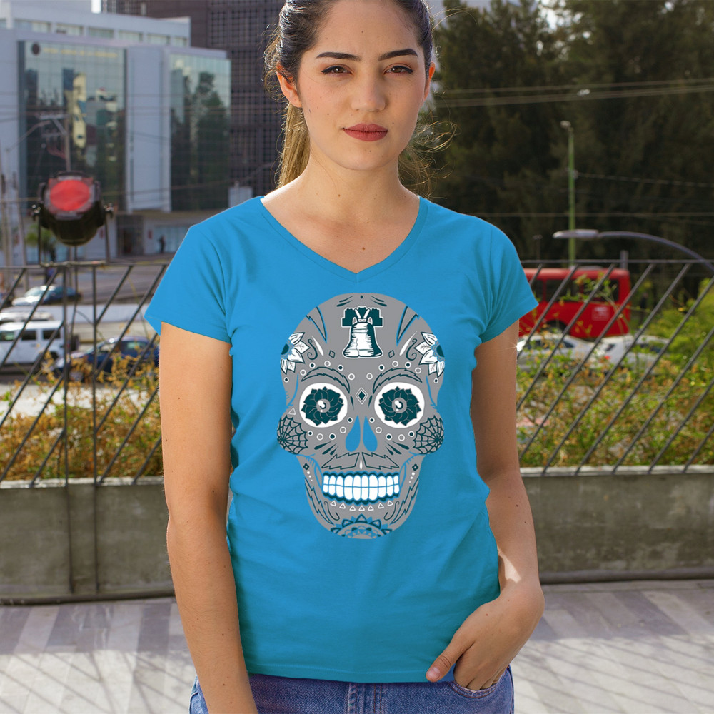 Philly meets tradition in this Sugar Skull design, mixing calavera art with the iconic liberty bell and marigold flowers. Perfect for Philly sports culture, fantasy league energy, or game day skull vibes, it captures Philly gothic art and fan zone spirit. A unique way to honor Dia de los Muertos while showing local Philadelphia pride and heritage in bold style.