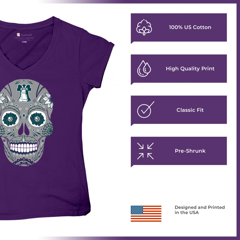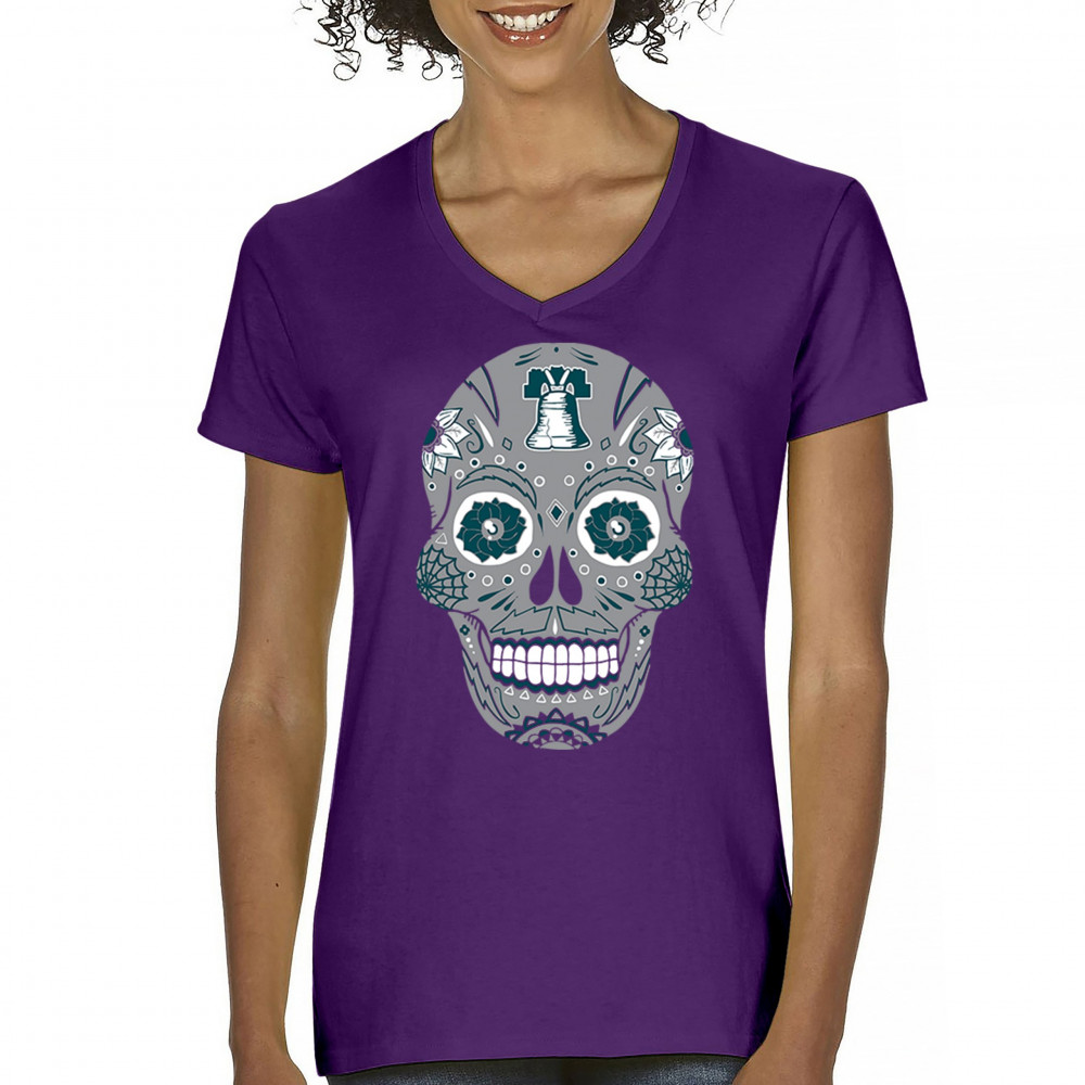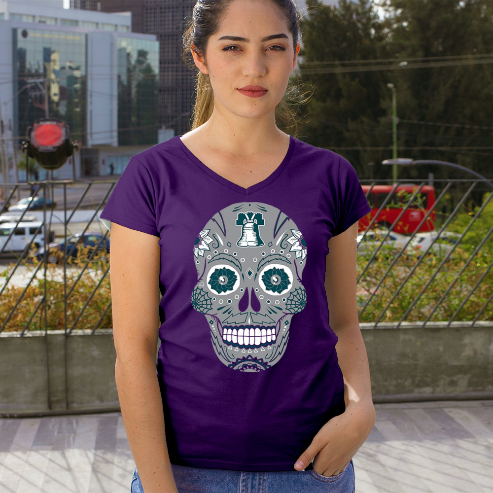 Philly meets tradition in this Sugar Skull design, mixing calavera art with the iconic liberty bell and marigold flowers. Perfect for Philly sports culture, fantasy league energy, or game day skull vibes, it captures Philly gothic art and fan zone spirit. A unique way to honor Dia de los Muertos while showing local Philadelphia pride and heritage in bold style.