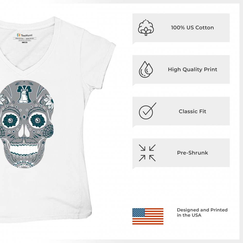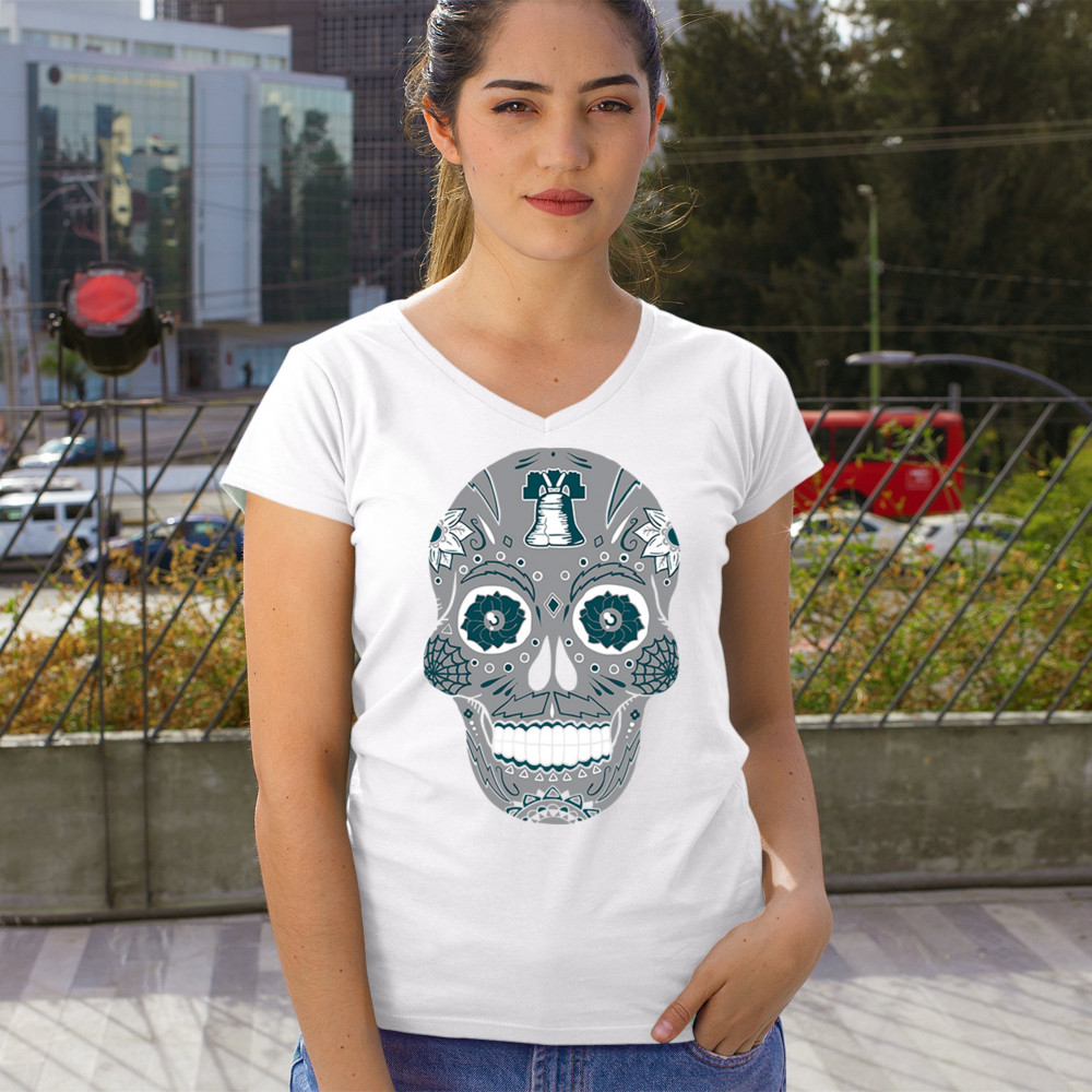 Philly meets tradition in this Sugar Skull design, mixing calavera art with the iconic liberty bell and marigold flowers. Perfect for Philly sports culture, fantasy league energy, or game day skull vibes, it captures Philly gothic art and fan zone spirit. A unique way to honor Dia de los Muertos while showing local Philadelphia pride and heritage in bold style.