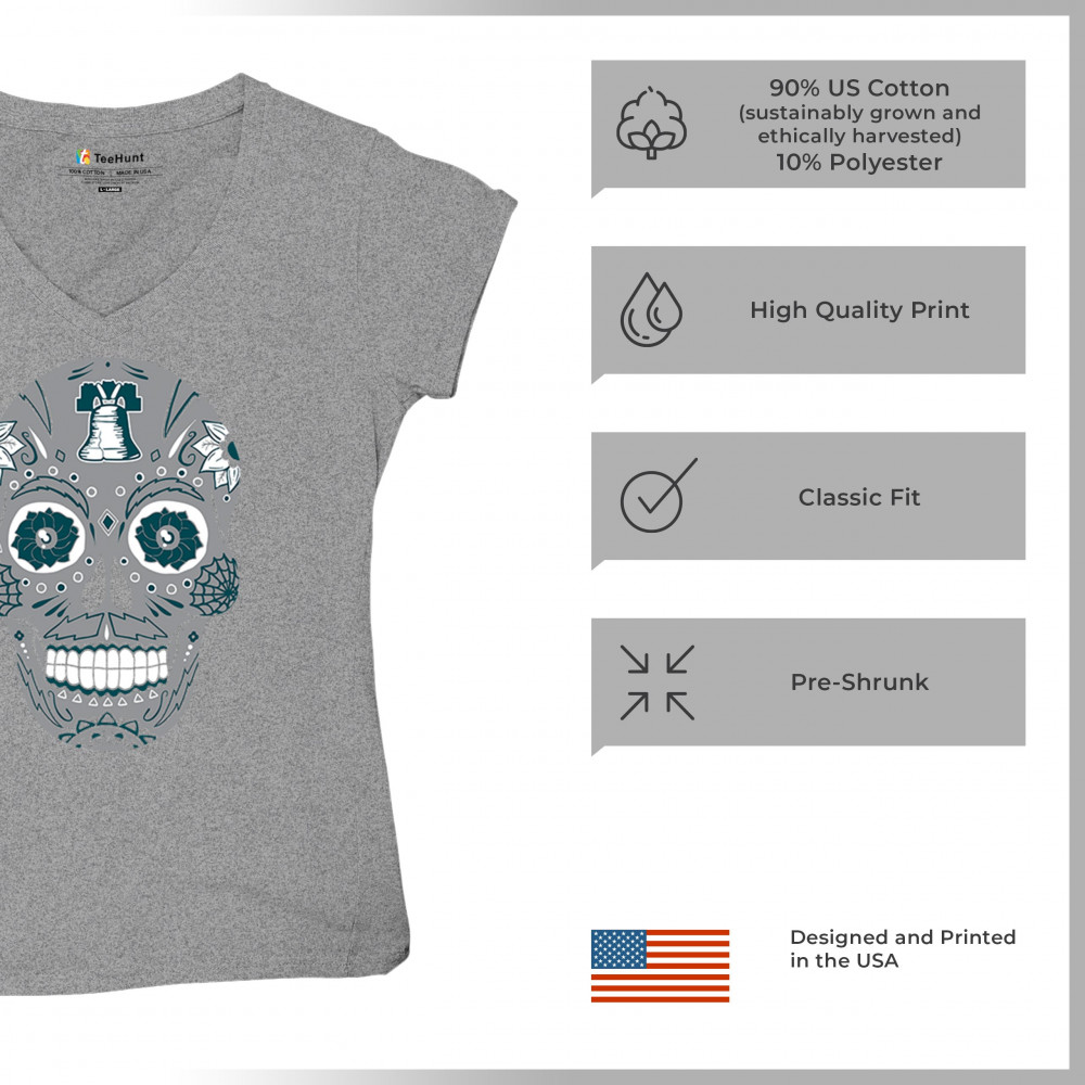 Philly meets tradition in this Sugar Skull design, mixing calavera art with the iconic liberty bell and marigold flowers. Perfect for Philly sports culture, fantasy league energy, or game day skull vibes, it captures Philly gothic art and fan zone spirit. A unique way to honor Dia de los Muertos while showing local Philadelphia pride and heritage in bold style.