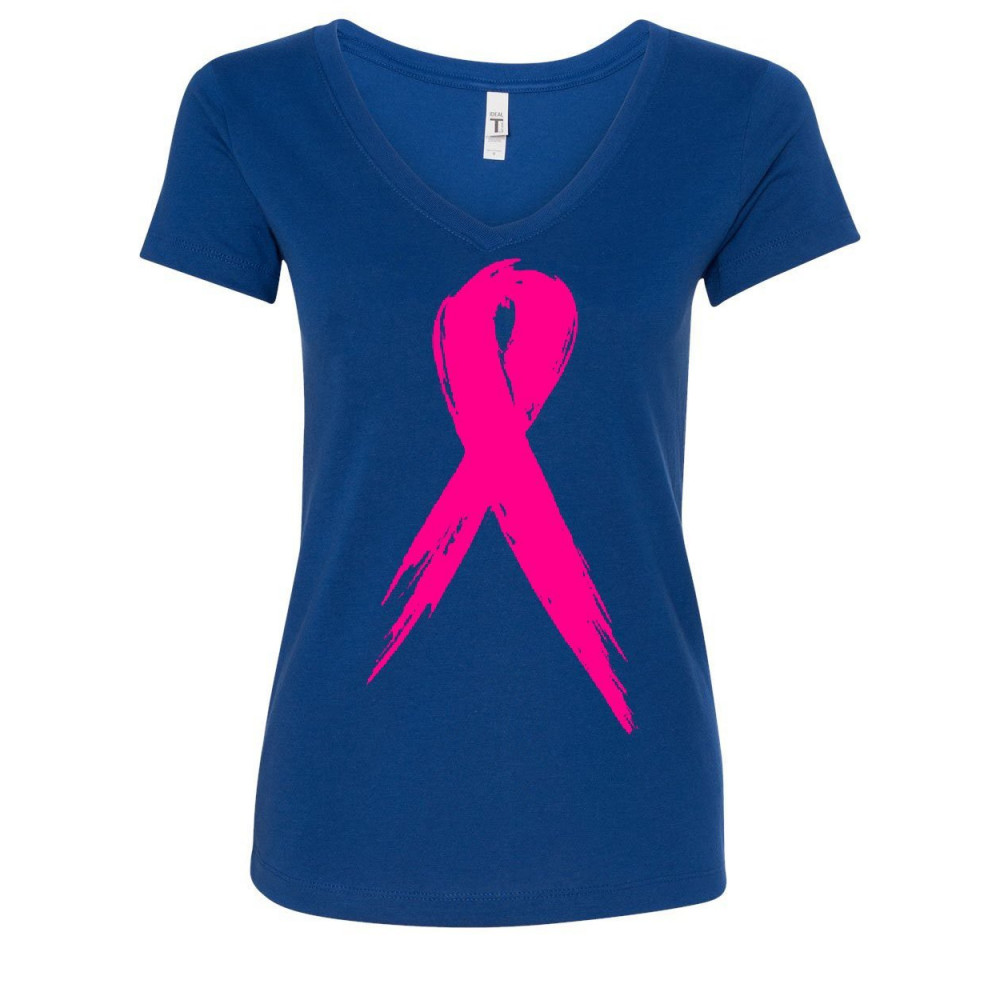 PINK RIBBON BREAST CANCER AWARENESS women's v-neck t-shirt hope fight survivor royal blue