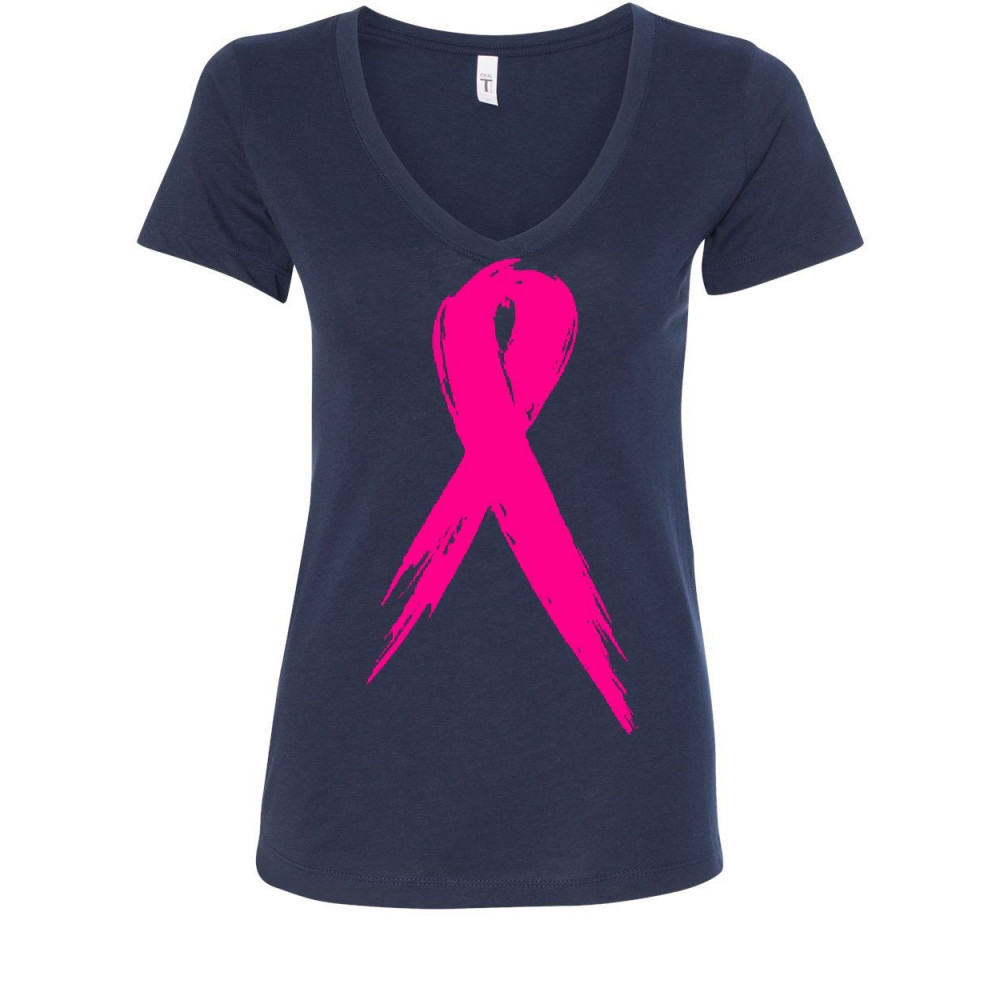PINK RIBBON BREAST CANCER AWARENESS women's v-neck t-shirt hope fight survivor navy blue