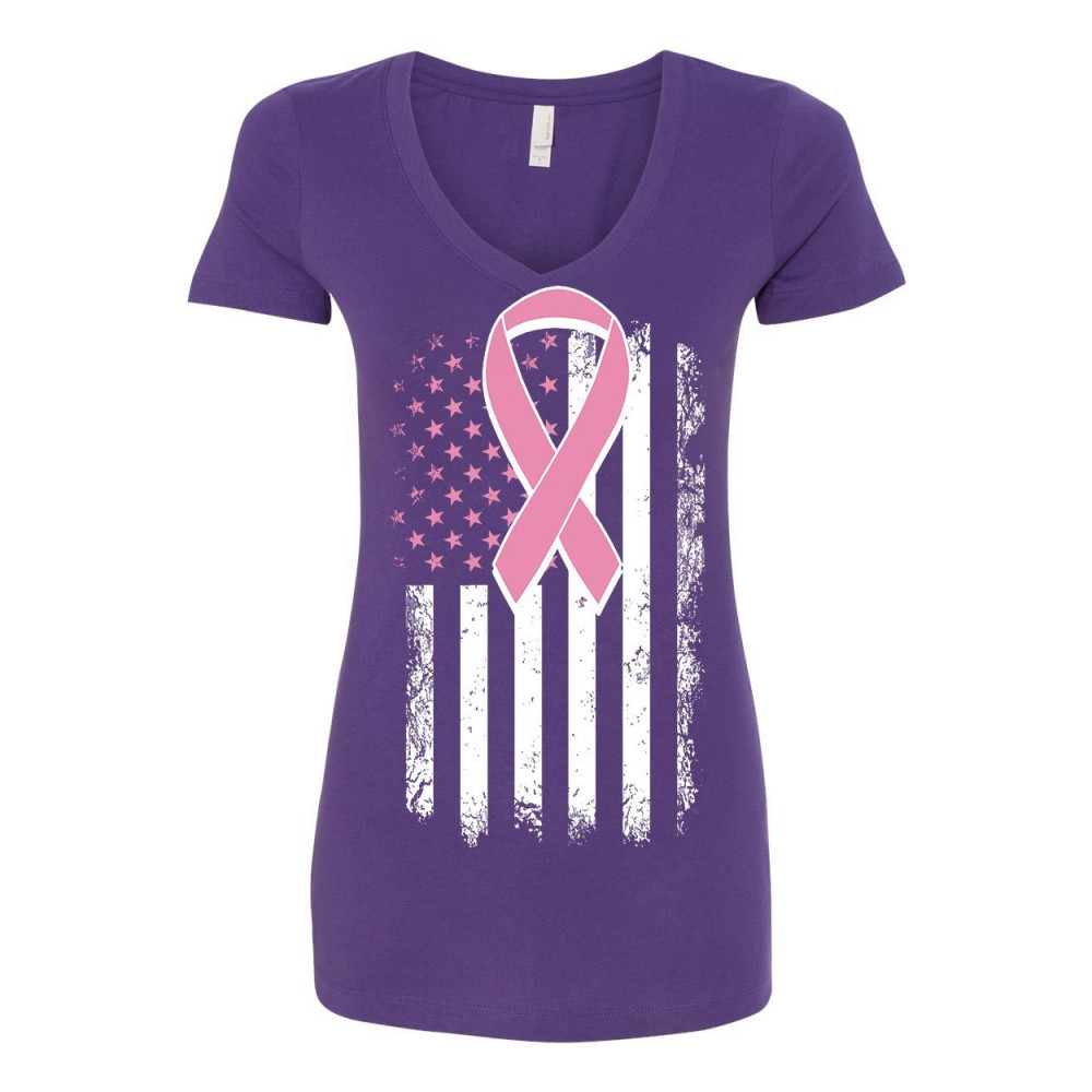 PINK RIBBON FLAG v-neck t-shirt breast cancer awareness purple