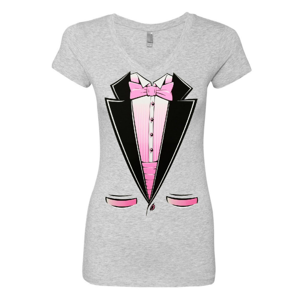 PINK TUXEDO v-neck t-shirt funny party wedding birthday tux gray