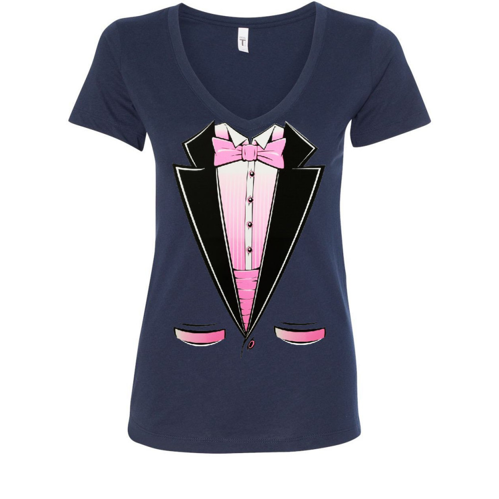 PINK TUXEDO v-neck t-shirt funny party wedding birthday tux navy blue