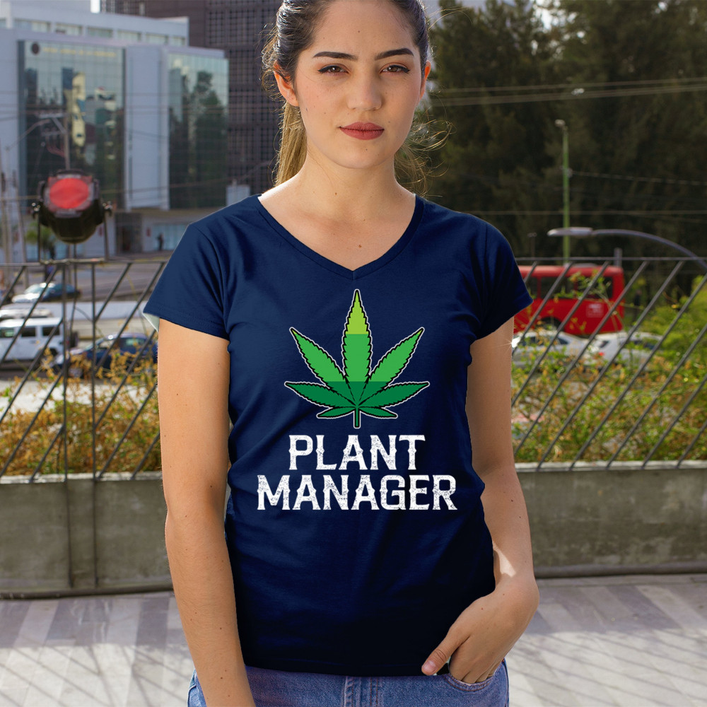 Humorous "Plant Manager" design featuring a bold green cannabis leaf. Perfect for fans of Mary Jane, stoned humor, and relaxed style. Ideal for chill vibes.