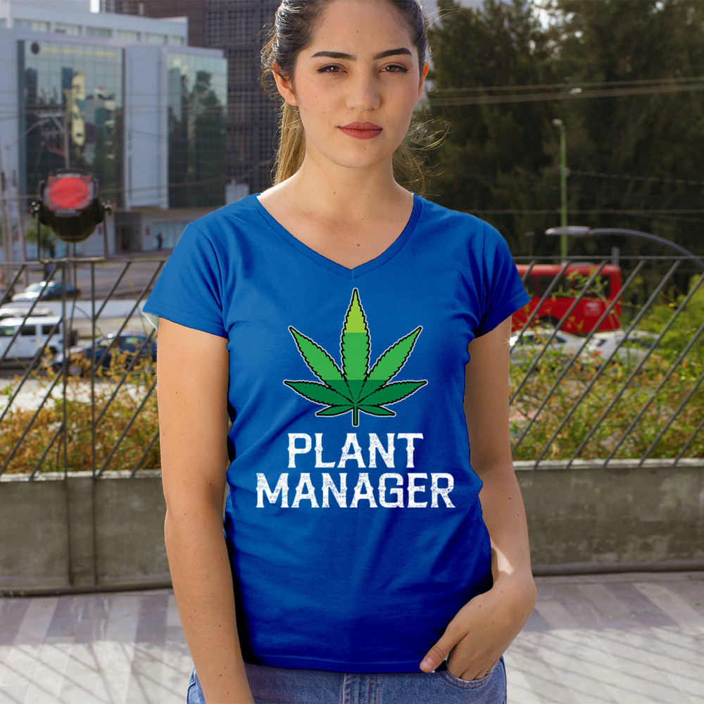 Humorous "Plant Manager" design featuring a bold green cannabis leaf. Perfect for fans of Mary Jane, stoned humor, and relaxed style. Ideal for chill vibes.