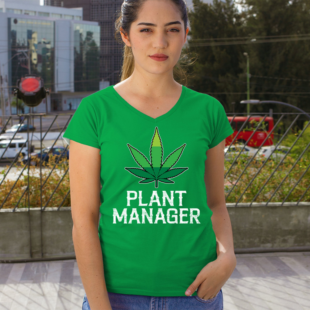 Humorous "Plant Manager" design featuring a bold green cannabis leaf. Perfect for fans of Mary Jane, stoned humor, and relaxed style. Ideal for chill vibes.