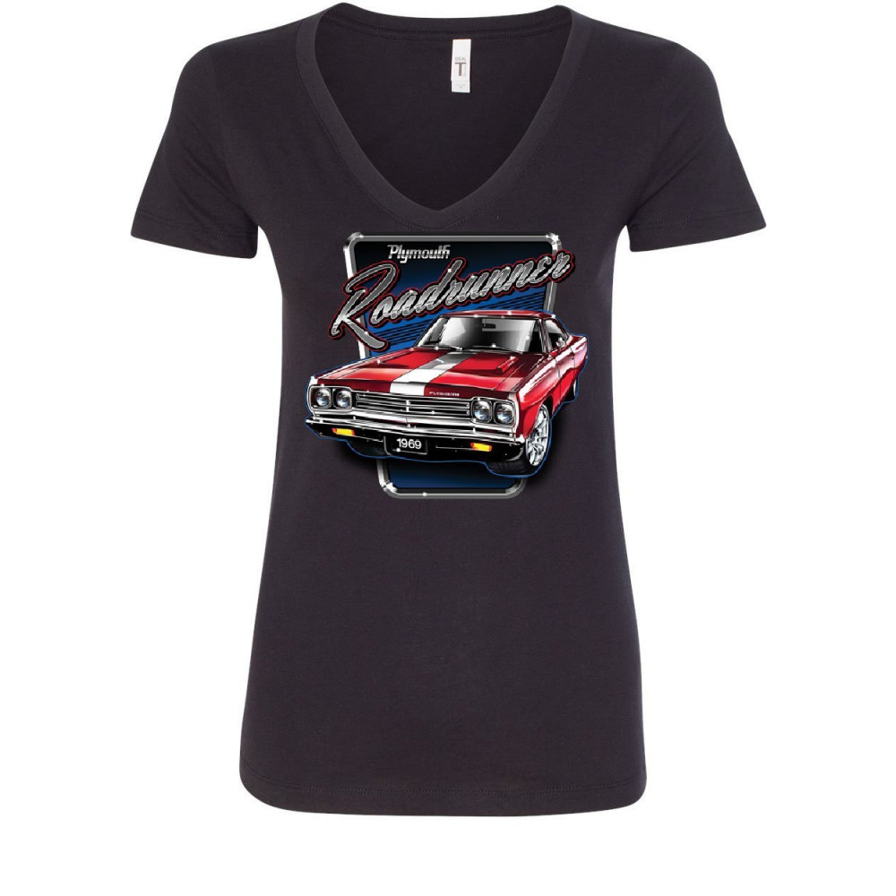 PLYMOUTH ROADRUNNER women's v-neck t-shirt american muscle car classic route 66 black