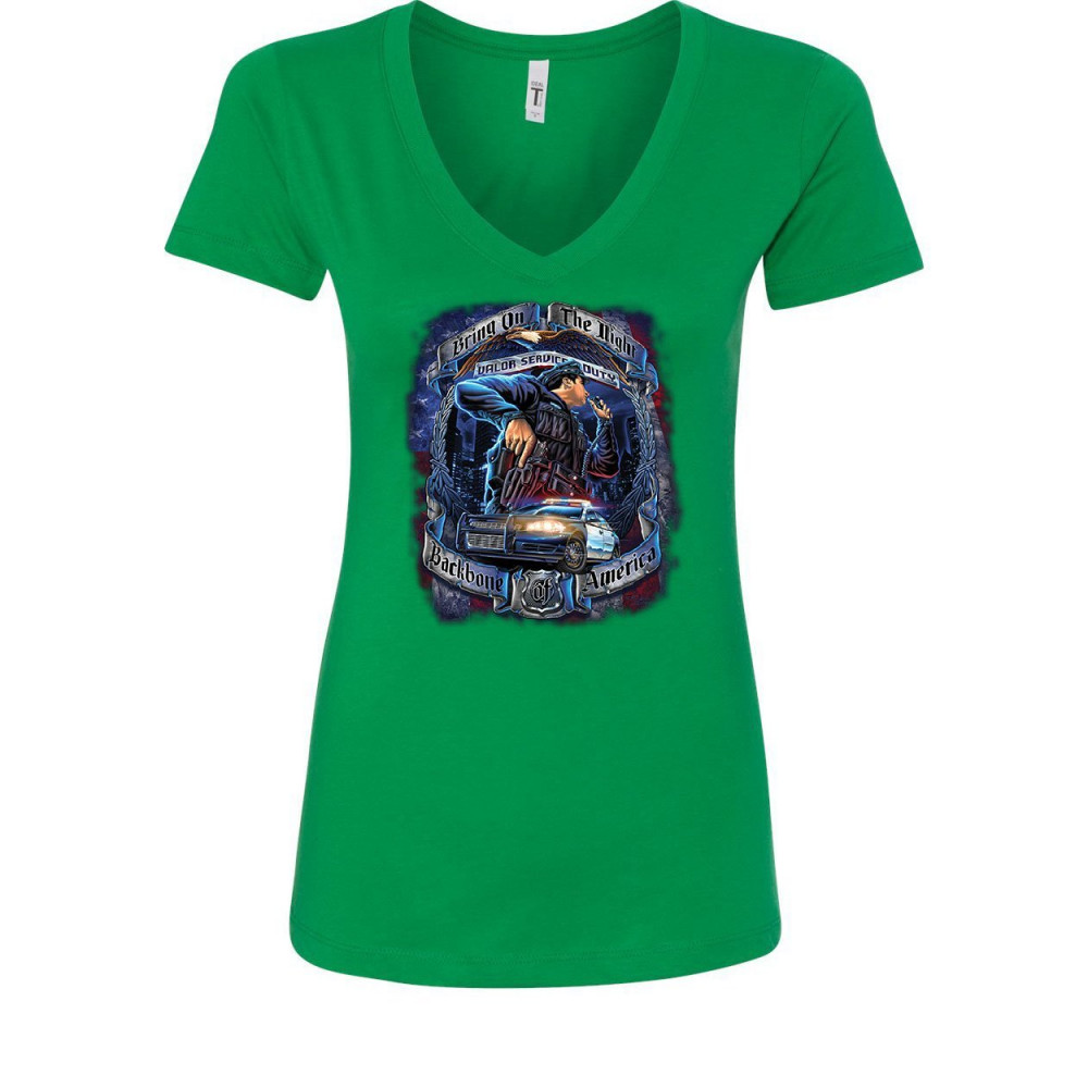 POLICE - BACKBONE OF AMERICA police backbone of america women's v-neck t-shirt valor service duty cop patrol green