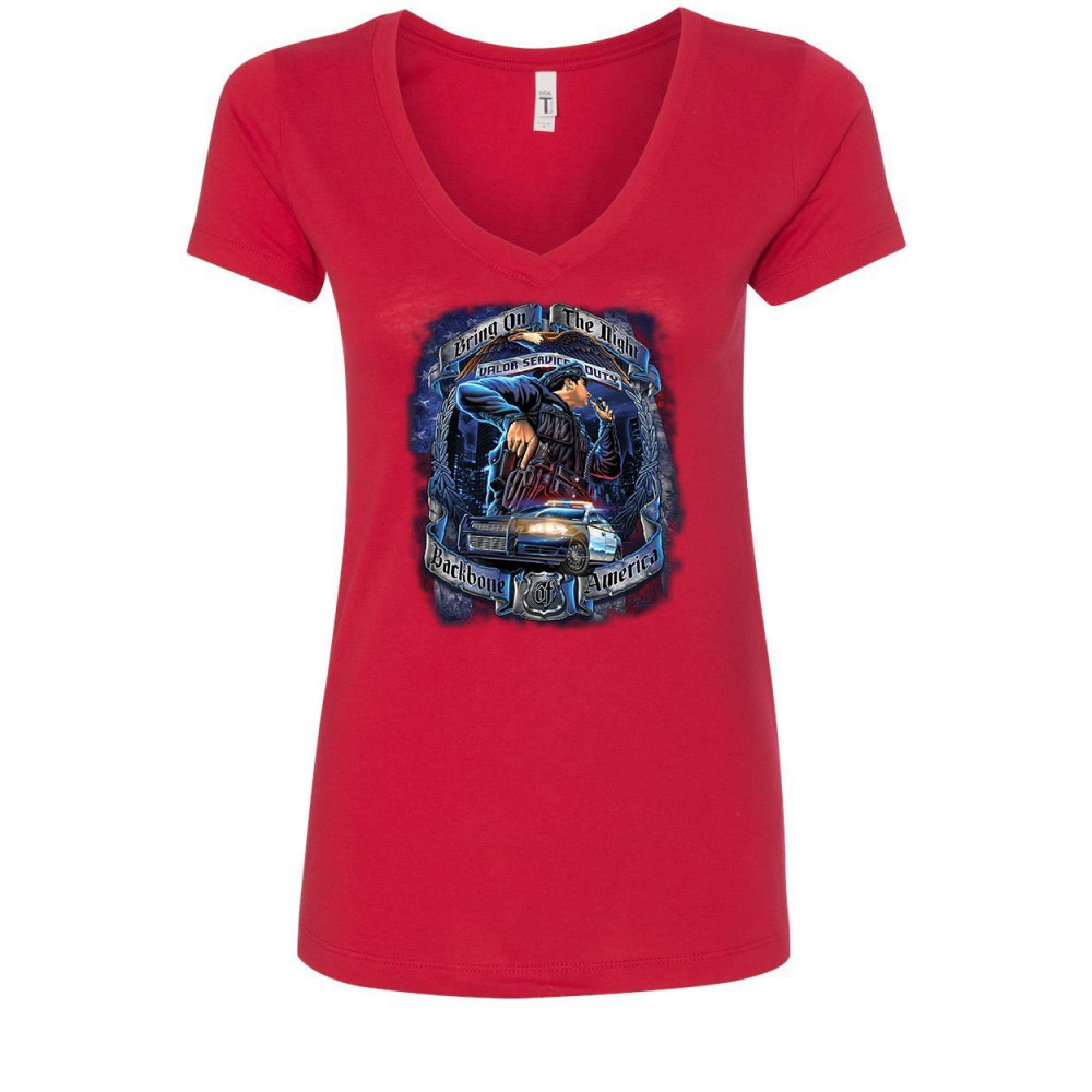 POLICE - BACKBONE OF AMERICA police backbone of america women's v-neck t-shirt valor service duty cop patrol red