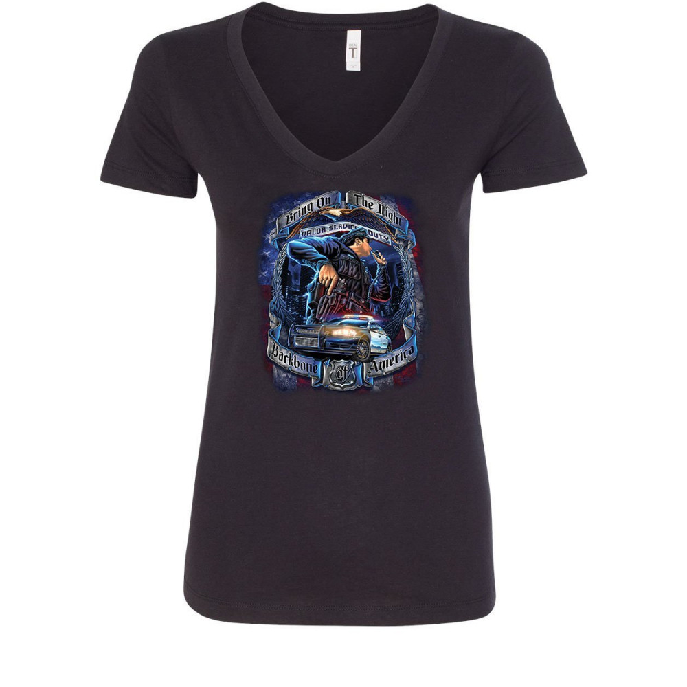 POLICE - BACKBONE OF AMERICA police backbone of america women's v-neck t-shirt valor service duty cop patrol black
