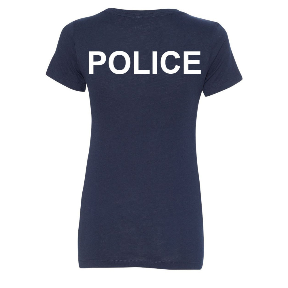 POLICE law enforcement women's v-neck t-shirt to protect and to serve emergency navy blue