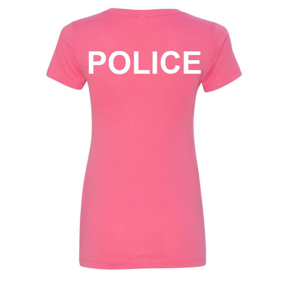 POLICE law enforcement women's v-neck t-shirt to protect and to serve emergency pink