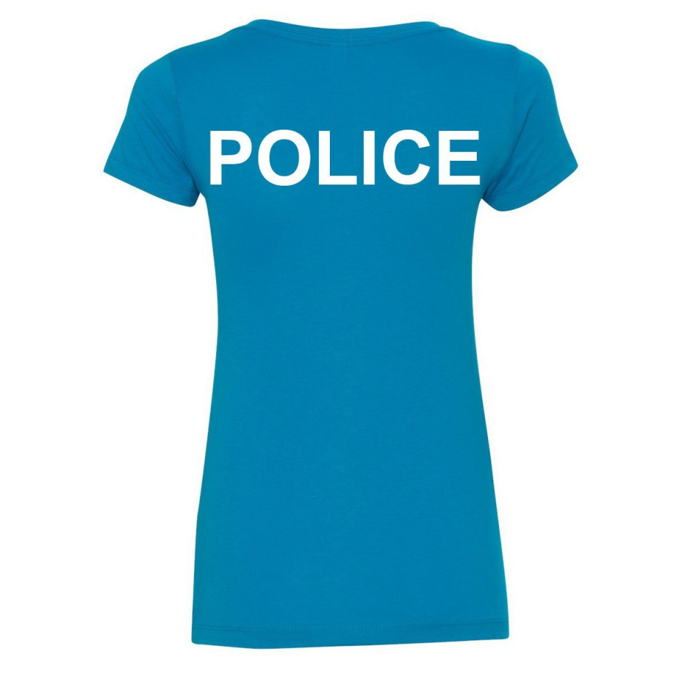POLICE law enforcement women's v-neck t-shirt to protect and to serve emergency turquoise