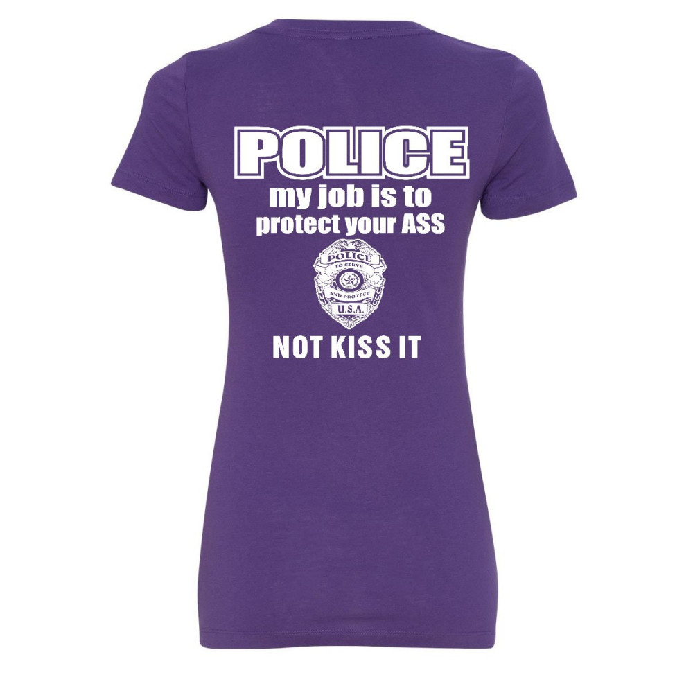 POLICE MY JOB IS TO PROTECT YOUR ASS v-neck t-shirt funny cop purple