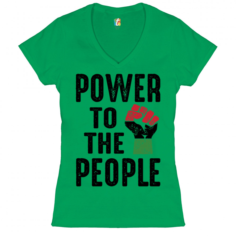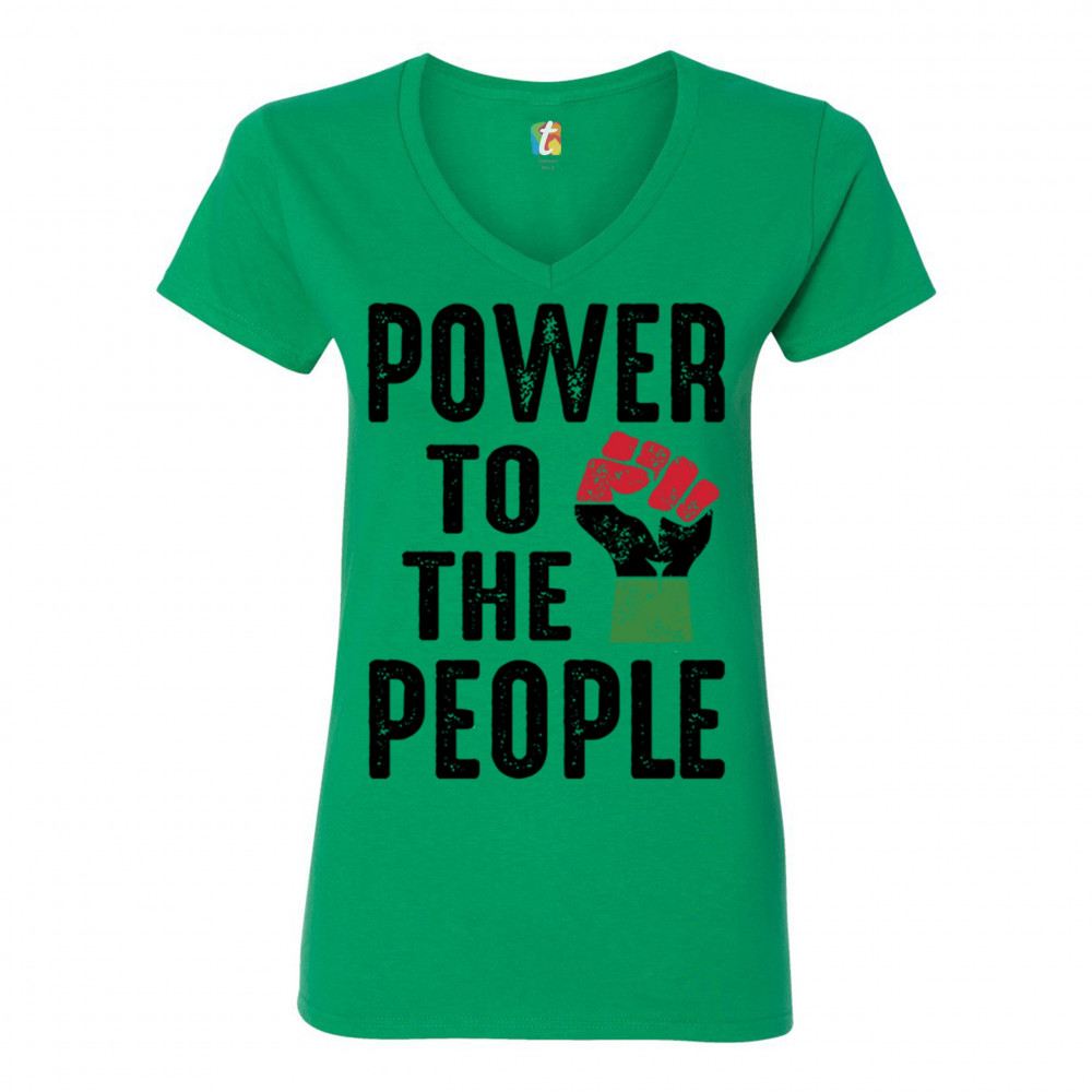 POWER TO THE PEOPLE women's v-neck t-shirt power fist civil rights blm tee green