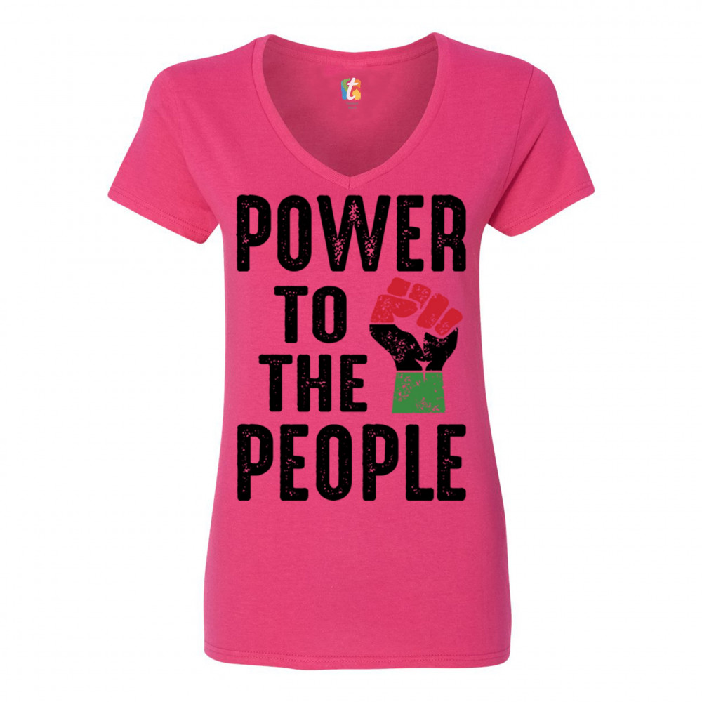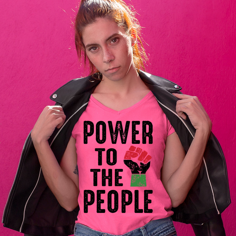 POWER TO THE PEOPLE women's v-neck t-shirt power fist civil rights blm tee pink