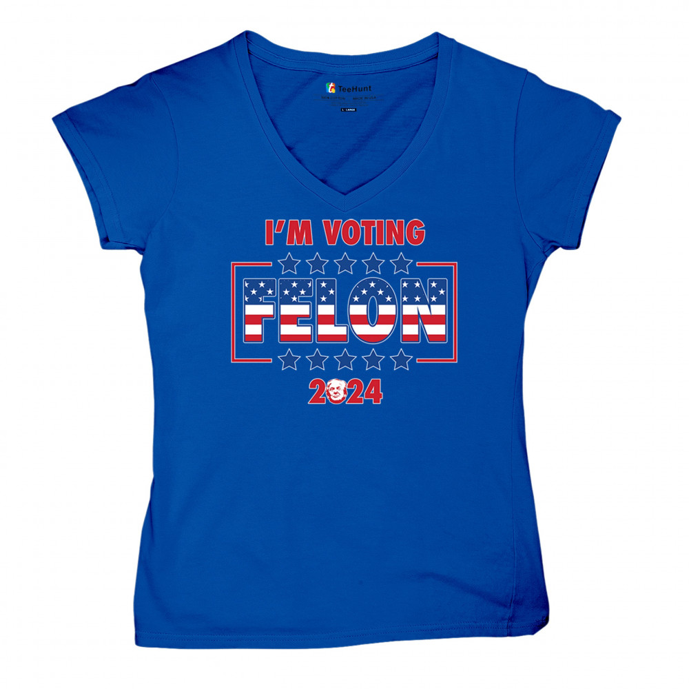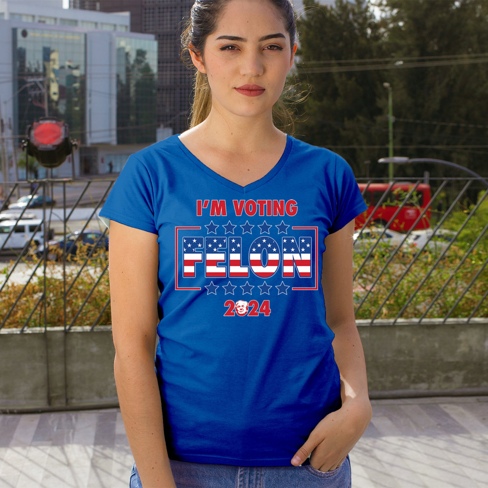 Show your support with the "I'm Voting Felon 2024" design, perfect for conservative patriots and Trump supporters. Featuring an American flag motif.