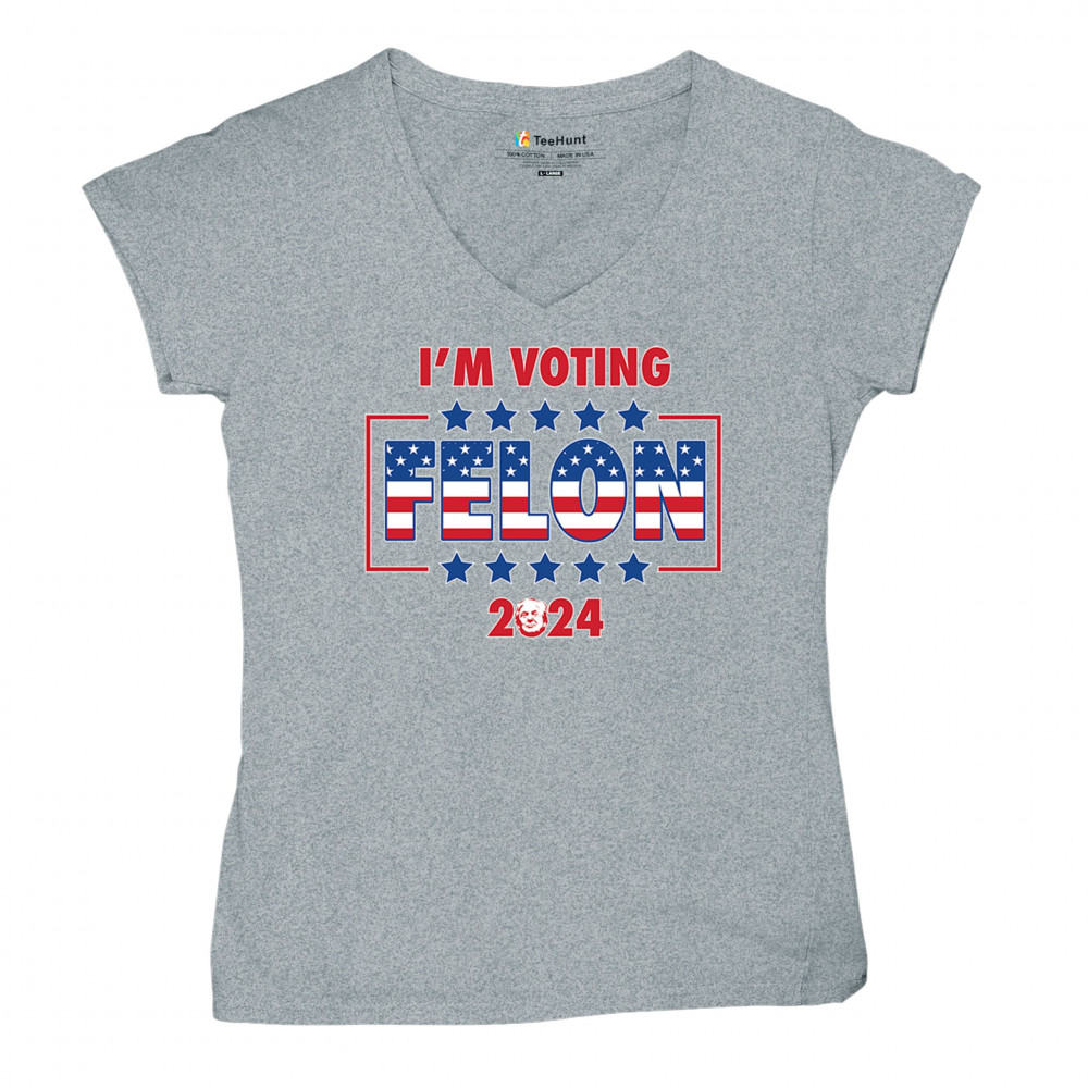 Show your support with the "I'm Voting Felon 2024" design, perfect for conservative patriots and Trump supporters. Featuring an American flag motif.