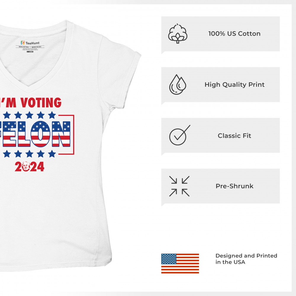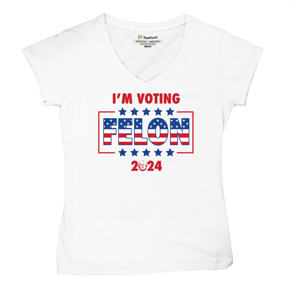 Show your support with the "I'm Voting Felon 2024" design, perfect for conservative patriots and Trump supporters. Featuring an American flag motif.