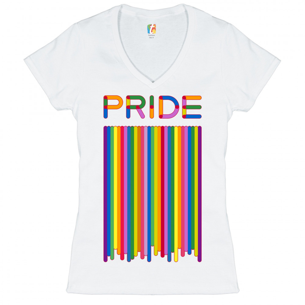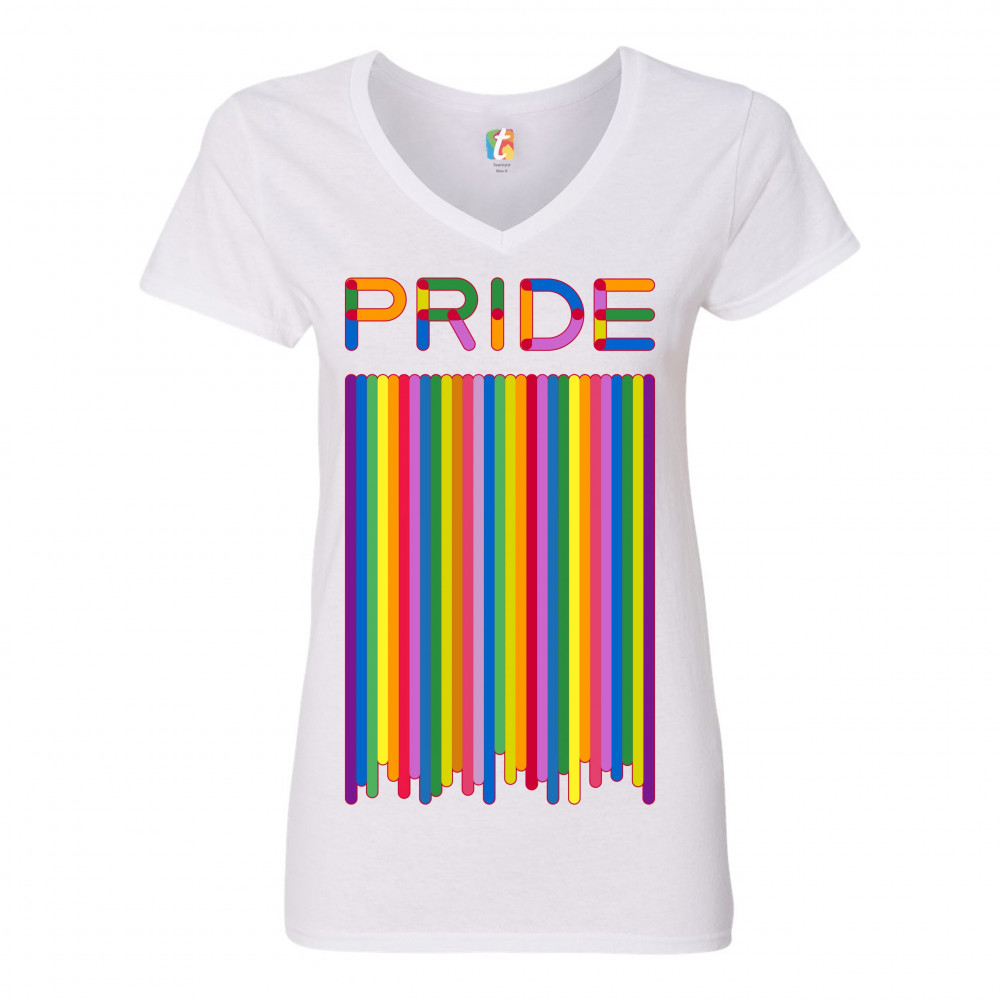 PRIDE FLAG women's v-neck t-shirt lgbt support gay pride same-sex marriage tee white