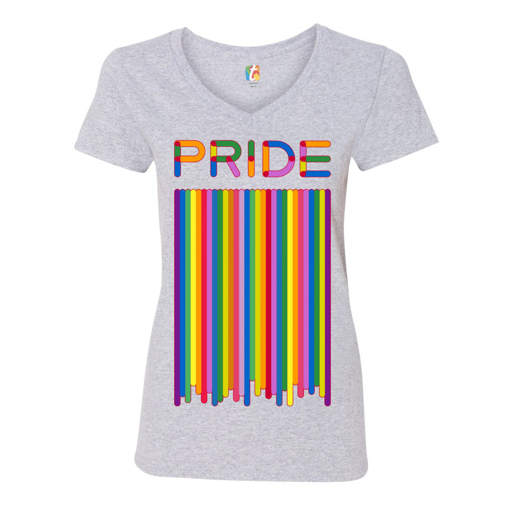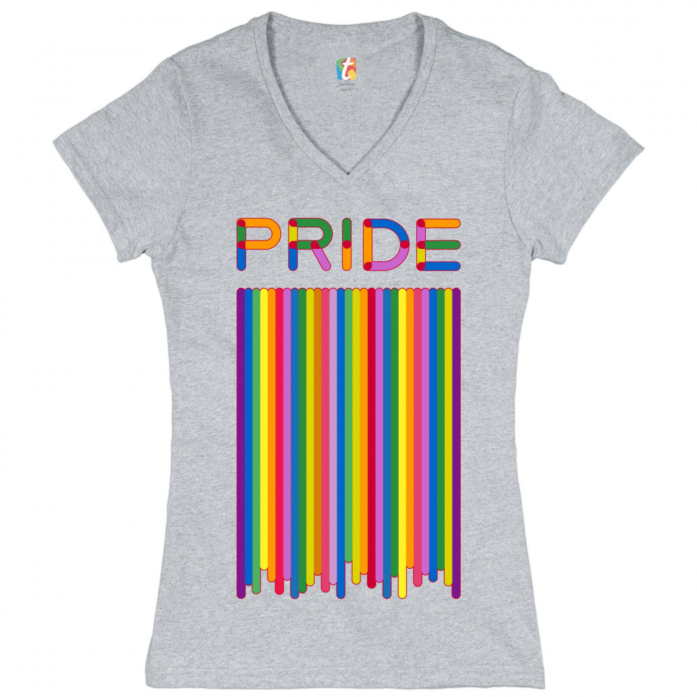 PRIDE FLAG women's v-neck t-shirt lgbt support gay pride same-sex marriage tee gray