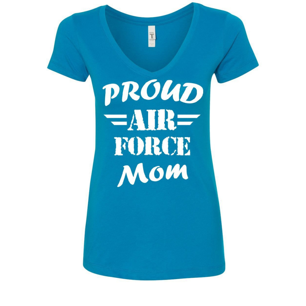 PROUD AIR FORCE MOM women's v-neck t-shirt military patriot heroic mother's day turquoise