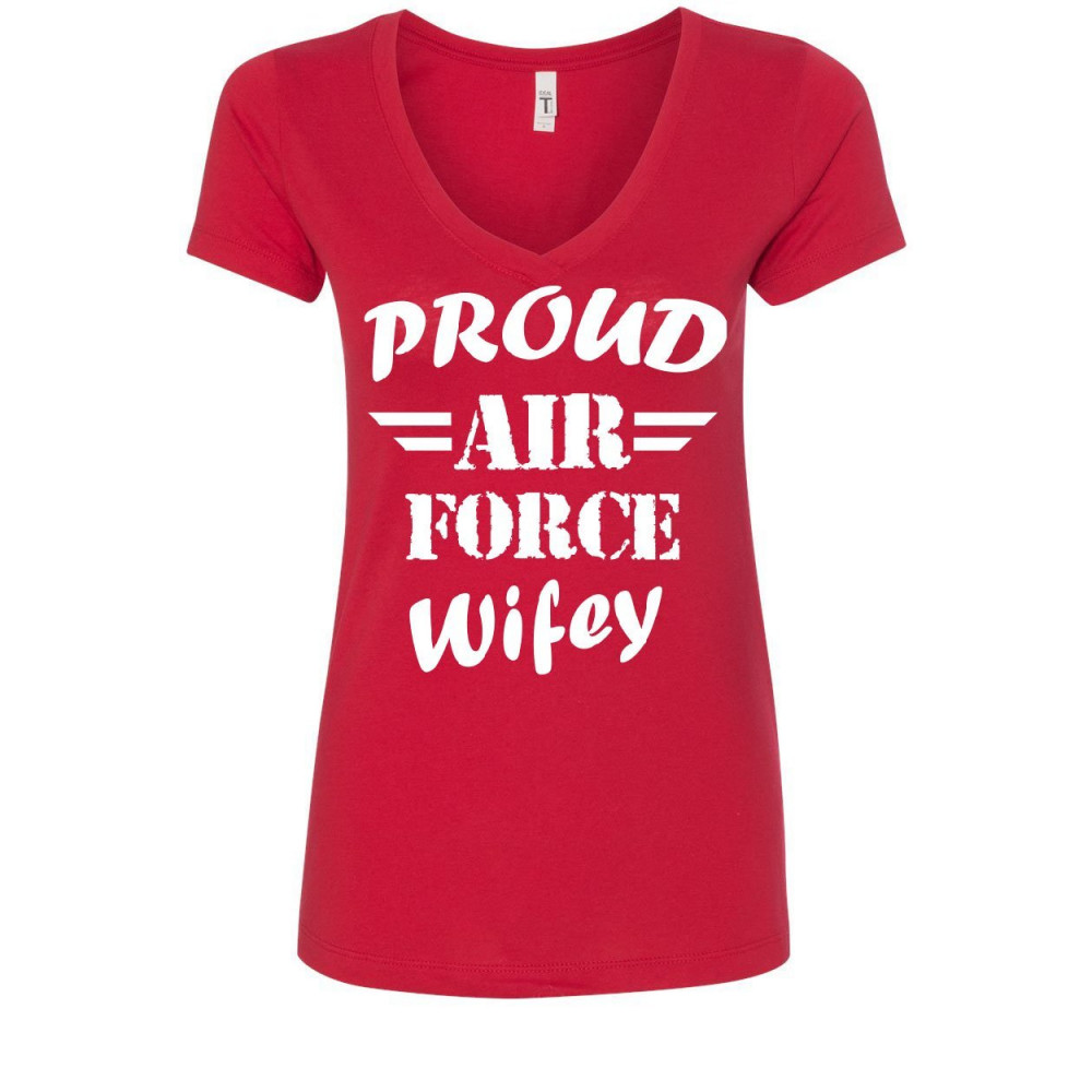PROUD AIR FORCE WIFEY women's v-neck t-shirt veteran wife pride patriot heroic red