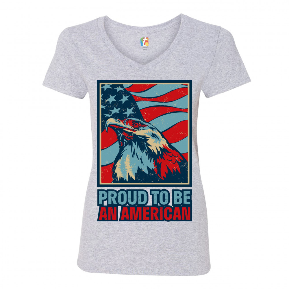 PROUD TO BE AN AMERICAN women's v-neck t-shirt 4th of july bald eagle usa tee gray