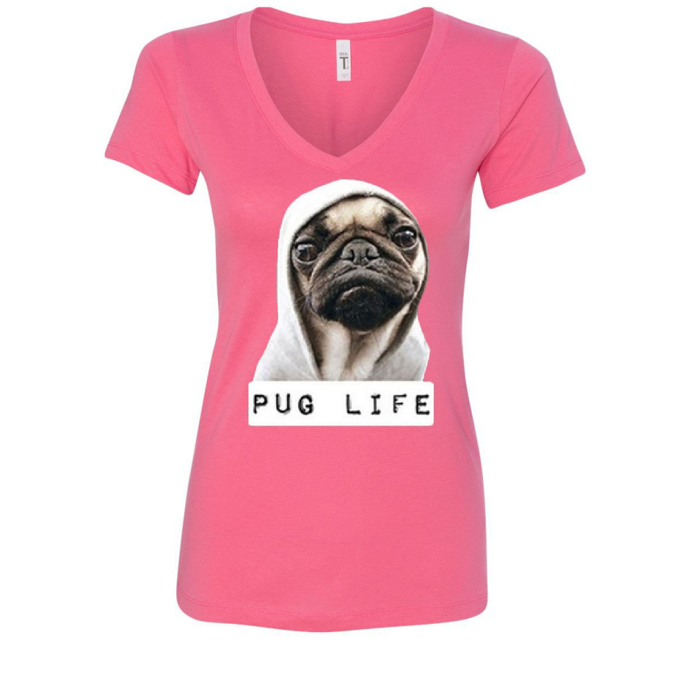 PUG LIFE FUNNY v-neck t-shirt dope thug life dog parody hipster pink