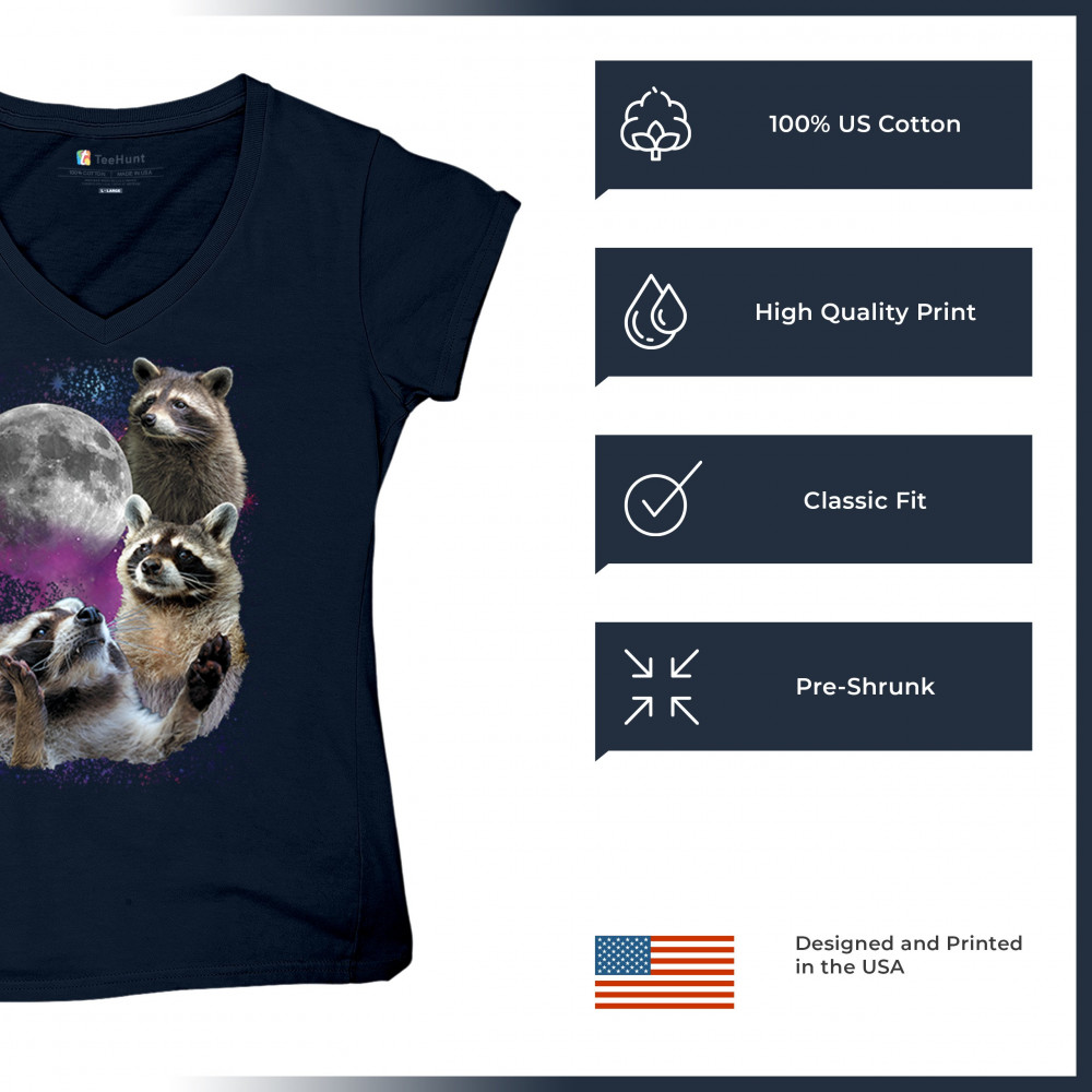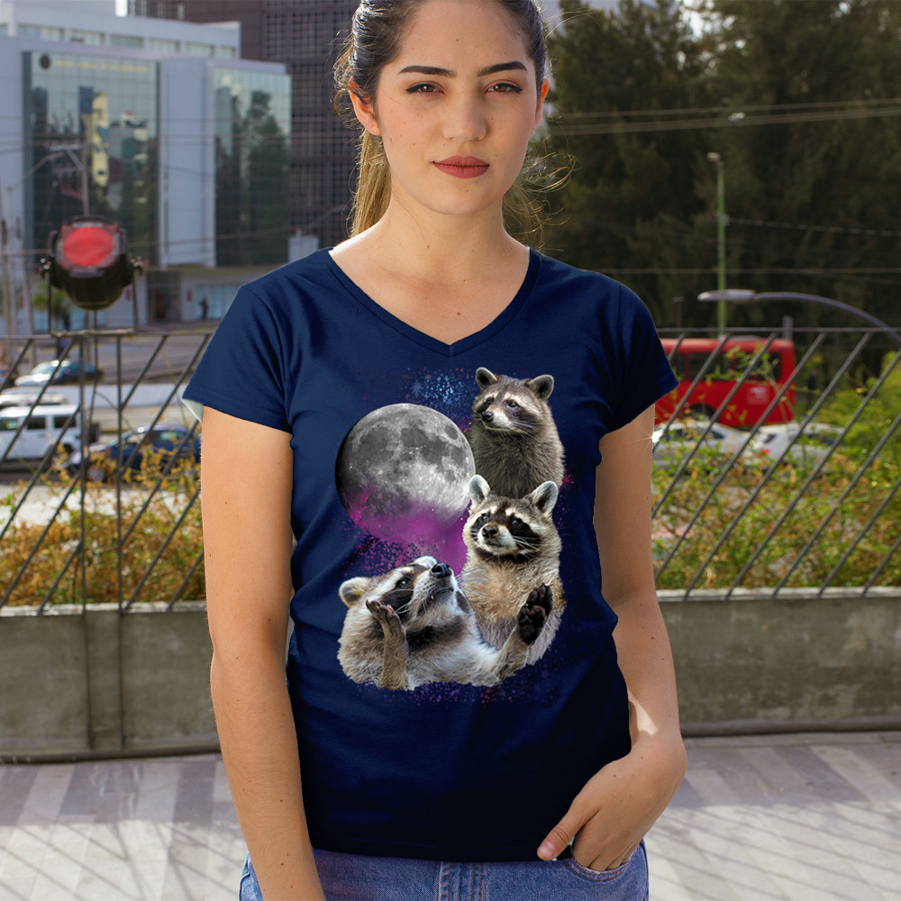 Embrace nature with this quirky raccoon and moon design, perfect for space and animal lovers. Ideal for casual wear or gifts.