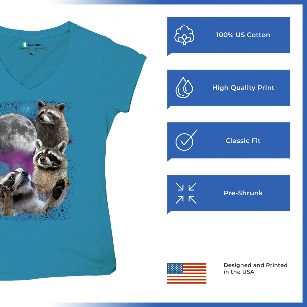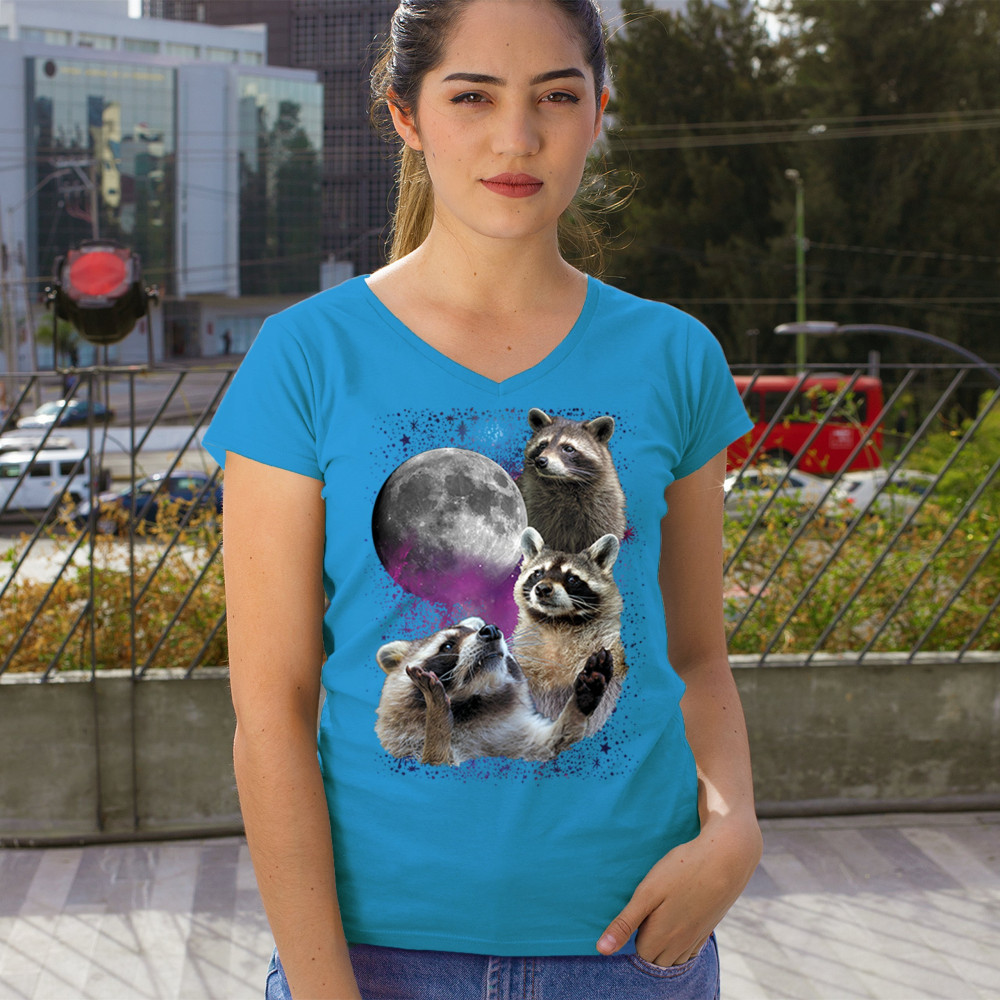 Embrace nature with this quirky raccoon and moon design, perfect for space and animal lovers. Ideal for casual wear or gifts.