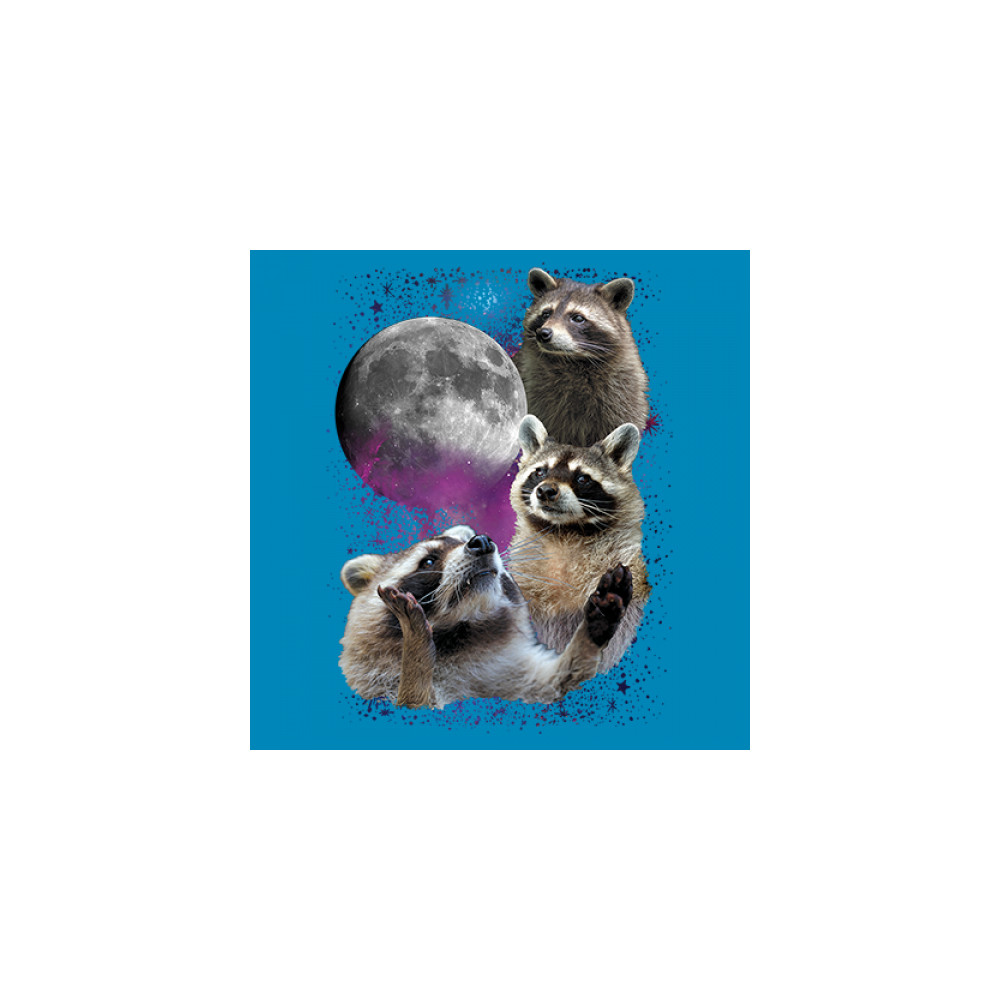 Step into the wild with this delightful and quirky raccoon and moon design. This captivating graphic features three raccoons against a backdrop of a starry night sky and a full moon, evoking the mysterious beauty of the wilderness. Perfect for nature lovers and those who appreciate nocturnal creatures with a silly twist, this design is a versatile addition to any casual wardrobe. It's ideal for outdoor adventures, relaxed outings, or themed events, and makes a thoughtful gift for anyone who loves the night and its charming wildlife.