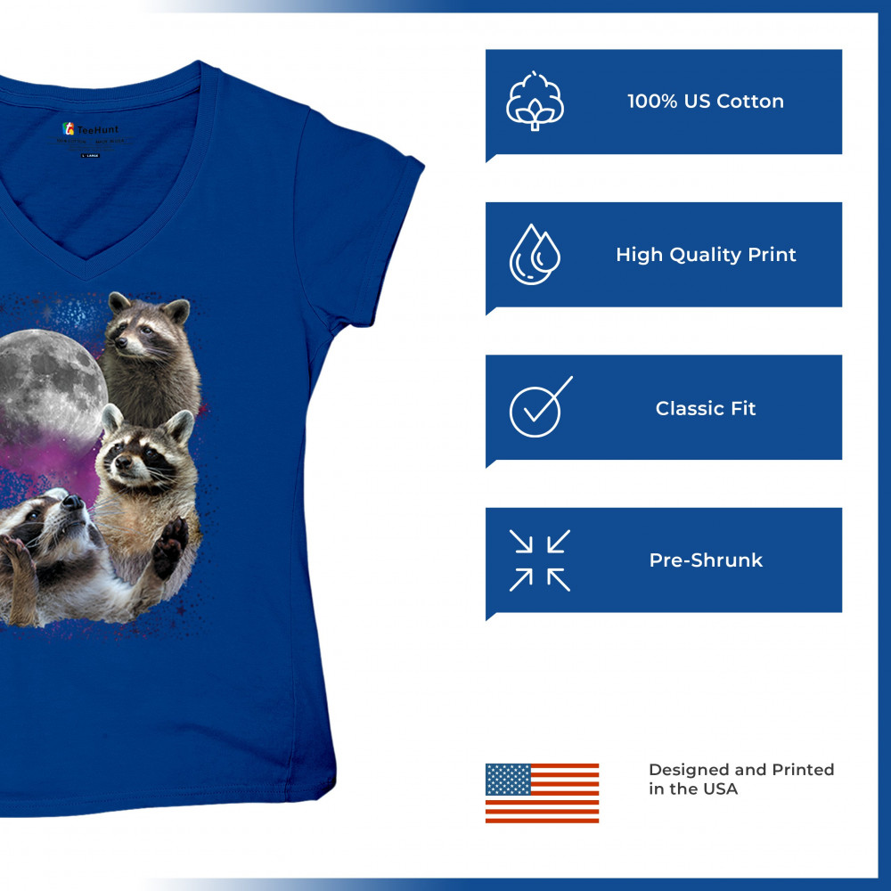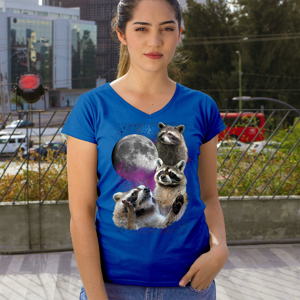 Embrace nature with this quirky raccoon and moon design, perfect for space and animal lovers. Ideal for casual wear or gifts.