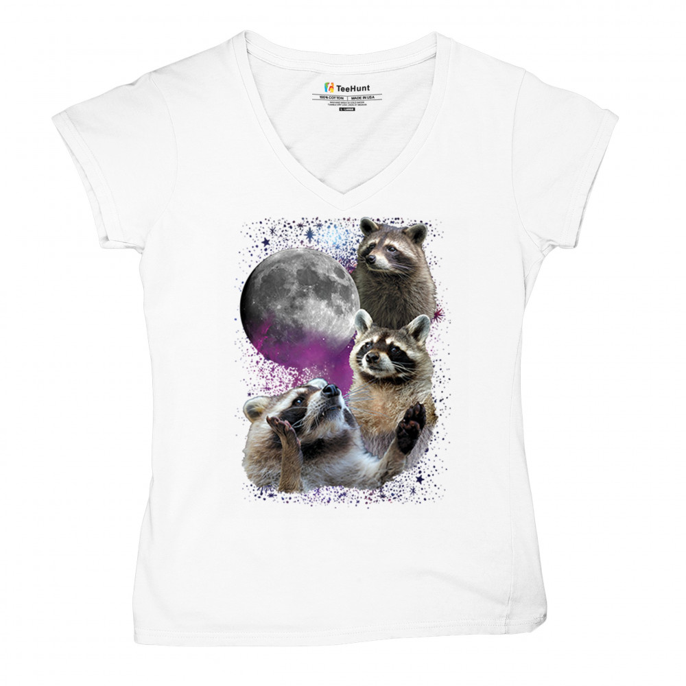 Embrace nature with this quirky raccoon and moon design, perfect for space and animal lovers. Ideal for casual wear or gifts.