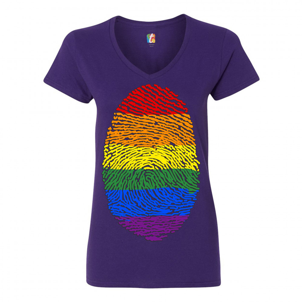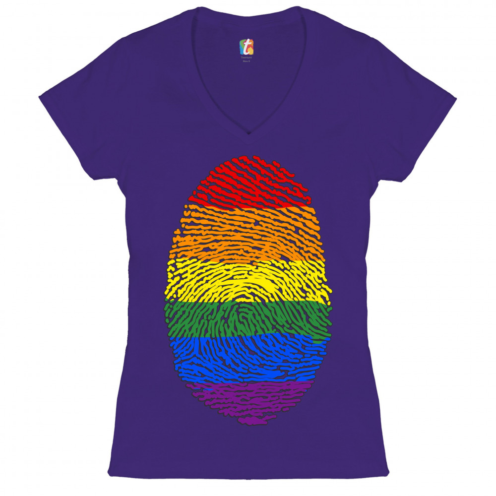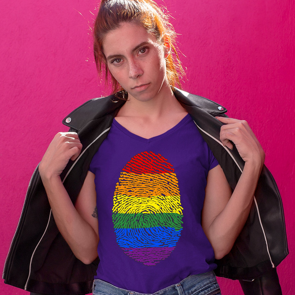 RAINBOW FINGERPRINT women's v-neck t-shirt gay pride month lgbtq support tee purple