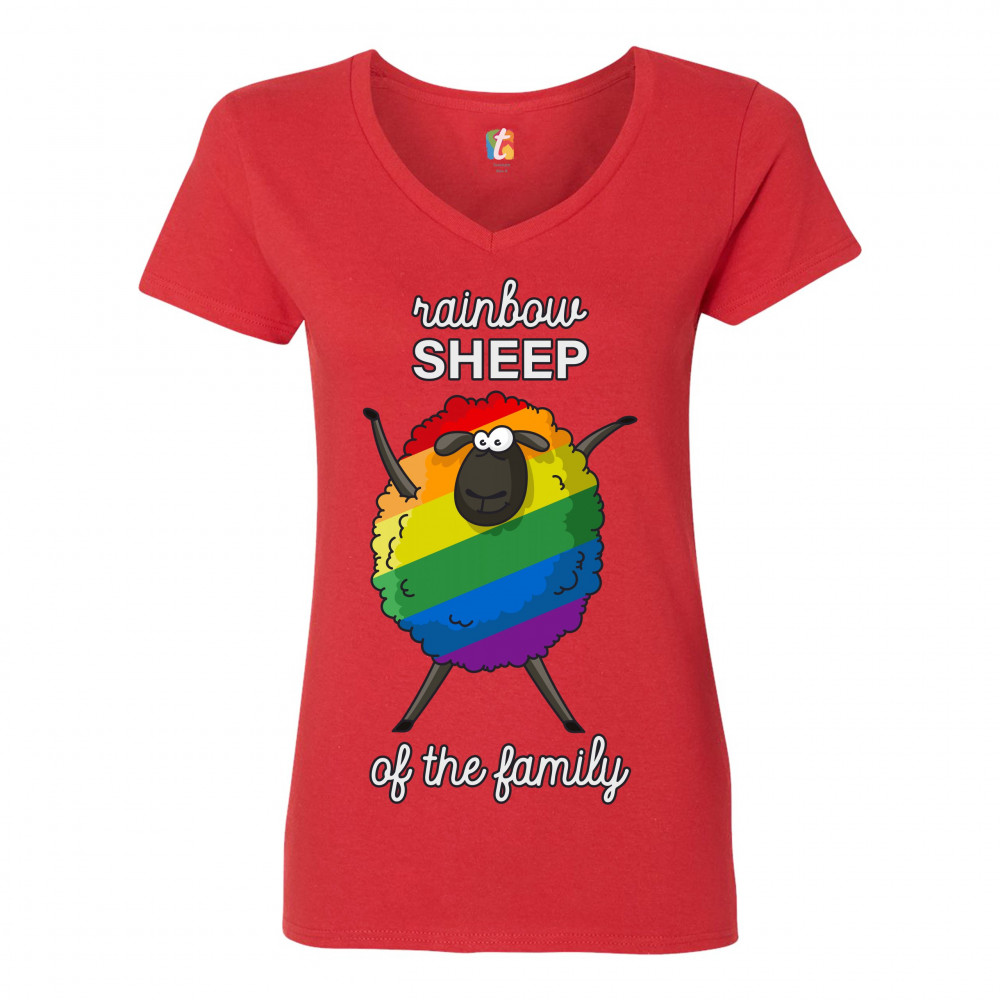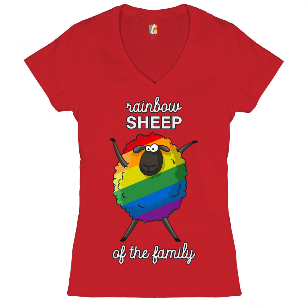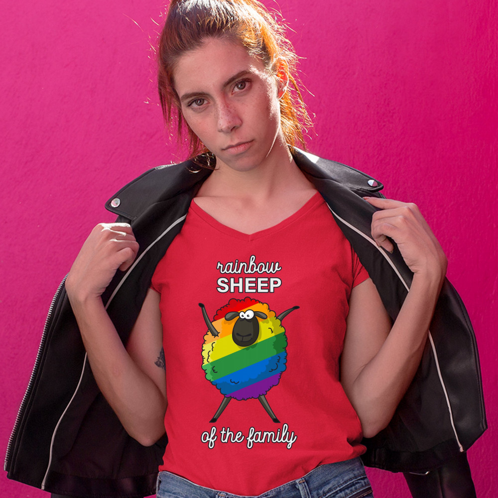 RAINBOW SHEEP OF THE FAMILY women's v-neck t-shirt gay pride lgbt support tee red