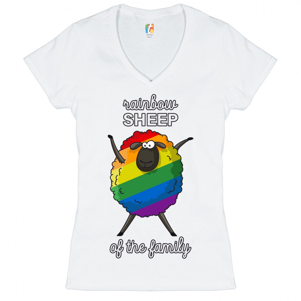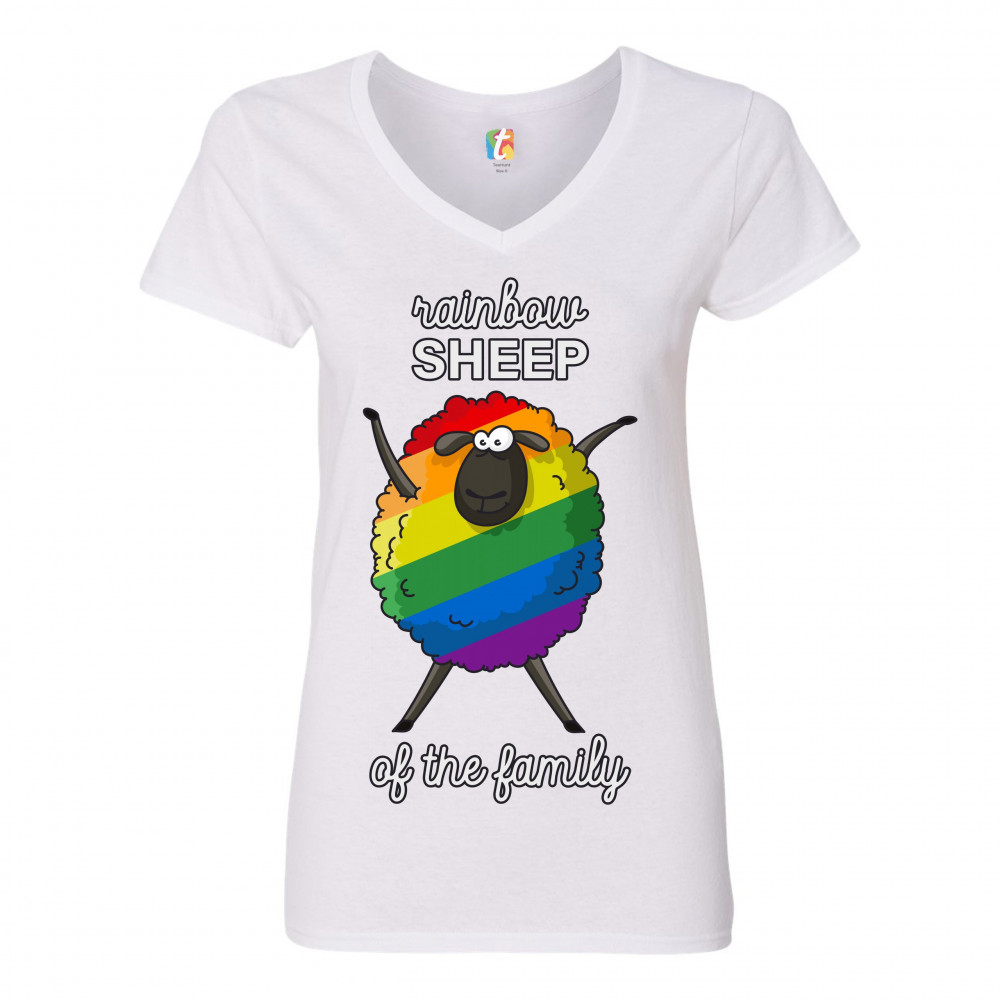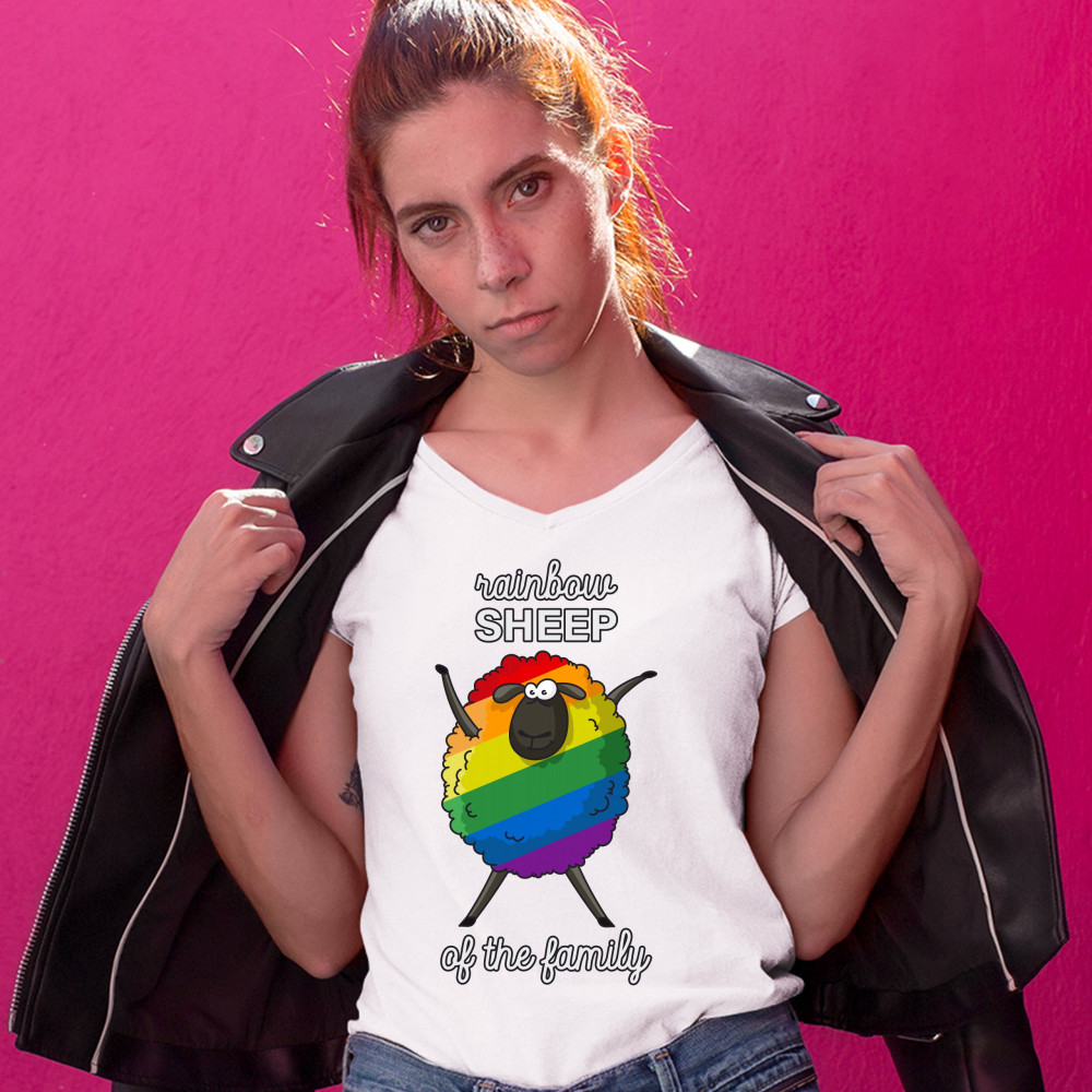 RAINBOW SHEEP OF THE FAMILY women's v-neck t-shirt gay pride lgbt support tee white