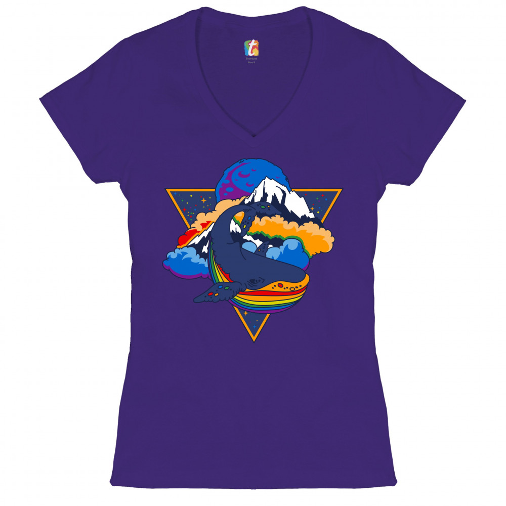 RAINBOW SPACE WHALE women's v-neck t-shirt lgbt pride tolerance trippy tee purple