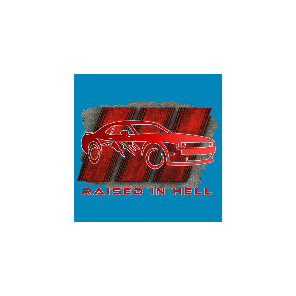 Bring heat to the streets with this Raised in Hell design. Featuring a blazing red muscle car and aggressive claw marks, it's perfect for Scat Pack lovers, burnout warriors, and throttle addicts. Whether you're tearing down the strip or parked at the meet, this design delivers pure muscle attitude and street-born fire.