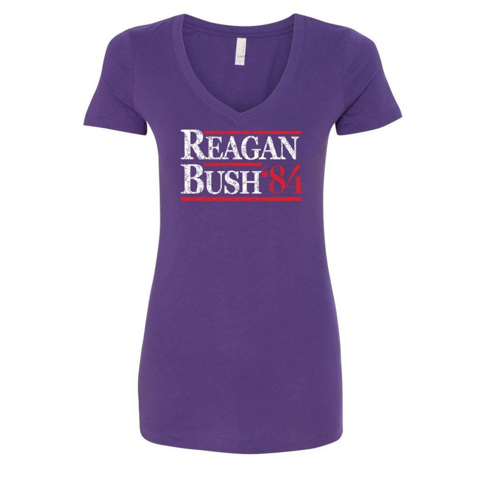 REAGAN BUSH '84 women's v-neck t-shirt ronald american president history gop purple