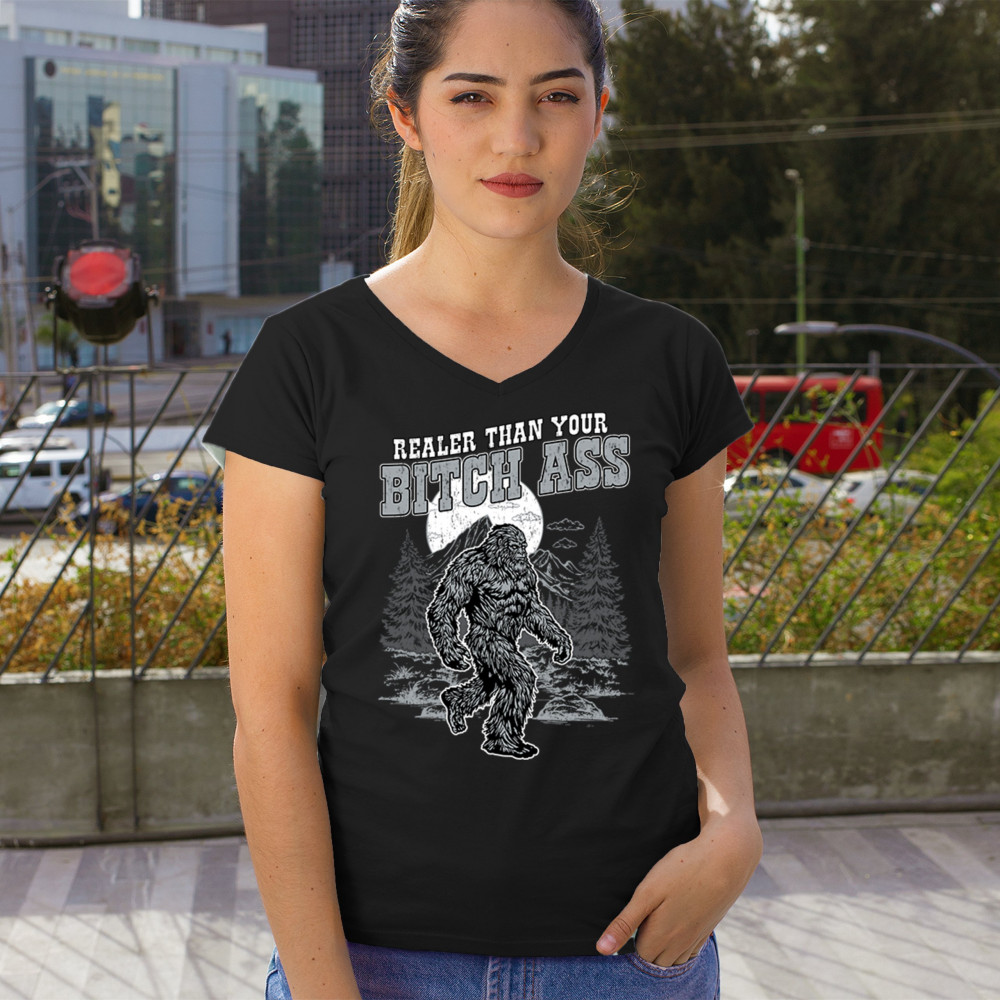Edgy Bigfoot design with sarcastic cryptid humor and gritty wilderness style. Great for trolls, jokers, and rugged outdoors fans.