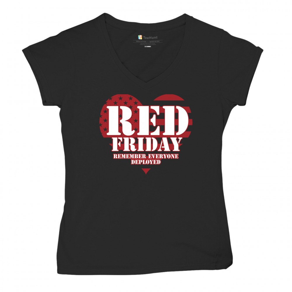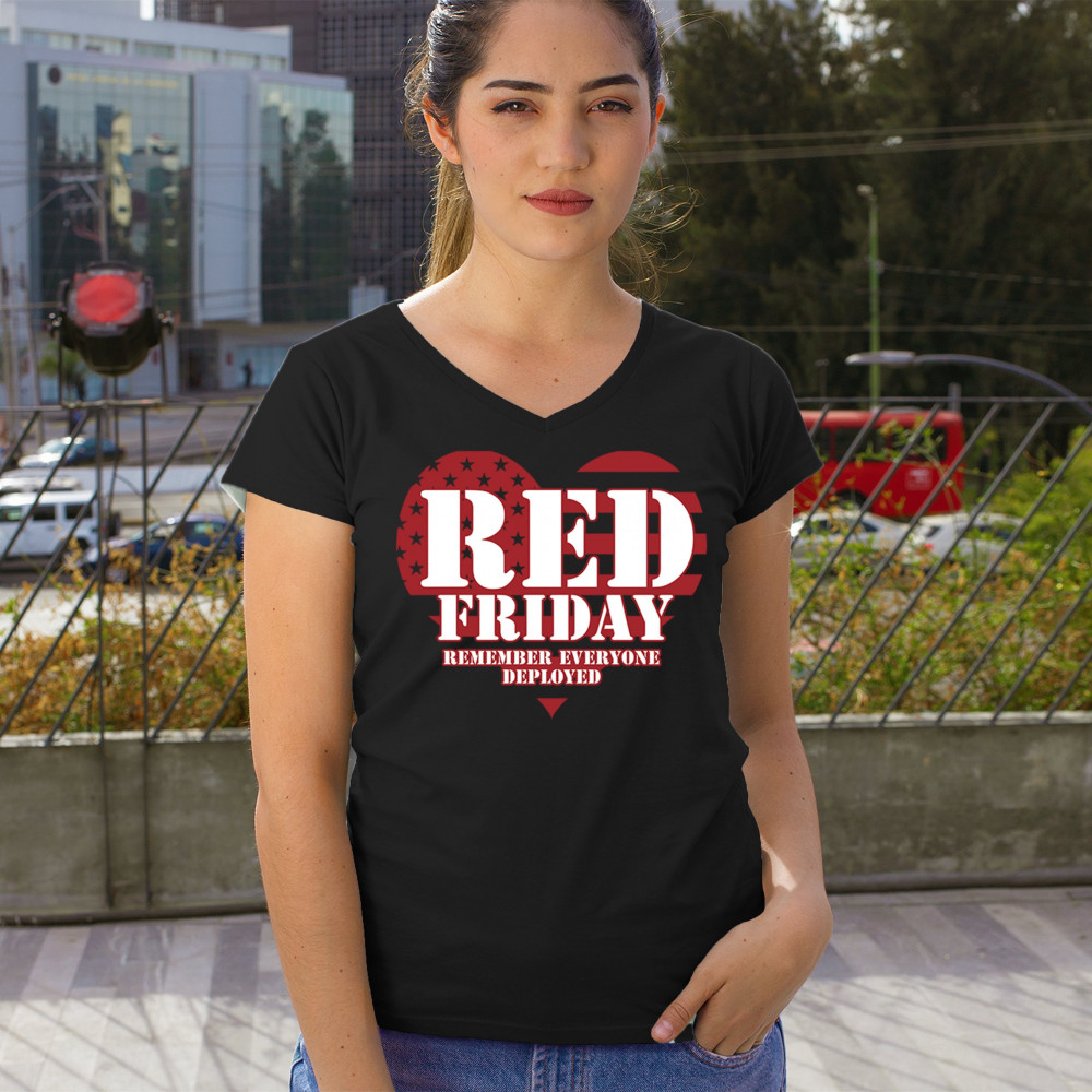 RED FRIDAY REMEMBER EVERYONE DEPLOYED women's v-neck t-shirt military flag tee black